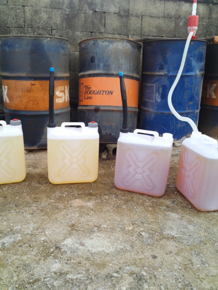 오늘 각각 말통에 담아보니. 보통 노란색인데. 한드럼통은 검붉은색 이네요