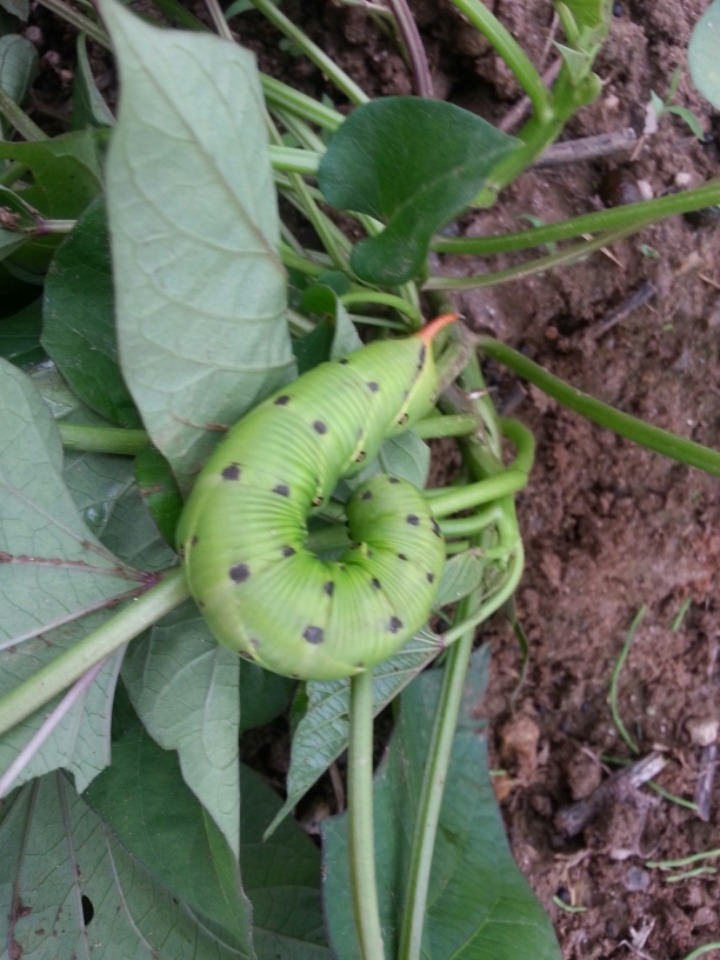 이 벌레 크기는 대략7센티 정도 크고 굵기도 해서 섬뜩해요 바로 죽이지 못하고 또랑물 수로에 던졌네요 그리고 순에 구멍이 여기저기 생겼는데 무슨 살충제를 뿌려줘야 하는지요? 콩이랑 옥수는 잘 자라주고 있는데 고구마가 걱정입니다.
