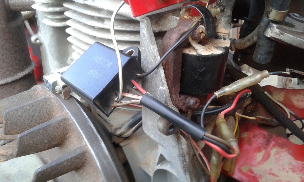 플라이휠 상단에 전선 두개짜리가 점화코일(발전기)입니다