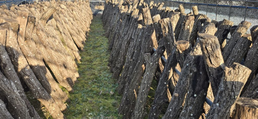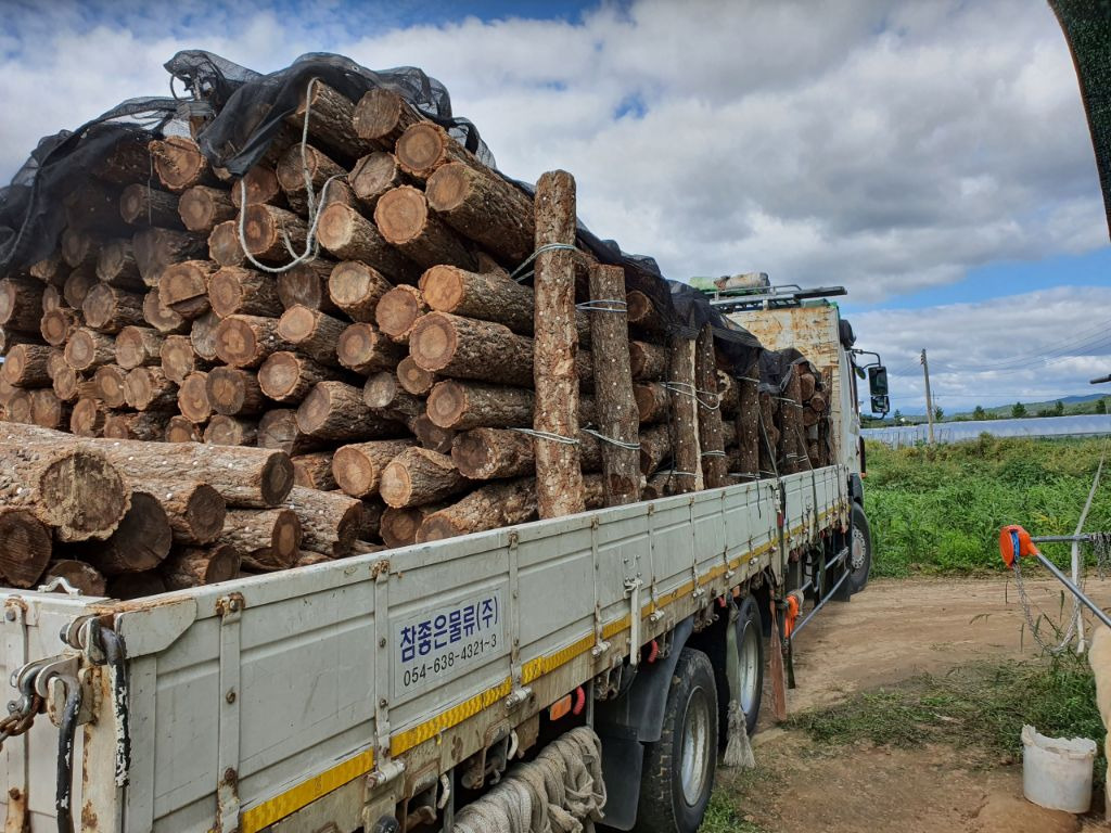 참나무 자목: 표고 재배에 최적화된 단단하고 영양가 높은 원목입니다. 껍질이 두껍고 속이 꽉 차 있어 버섯이 오래도록 잘 나옵니다.