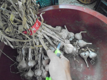 (상한쪽이 들어있는 마늘 골라내고 온전한 통으로만 선별하였지만