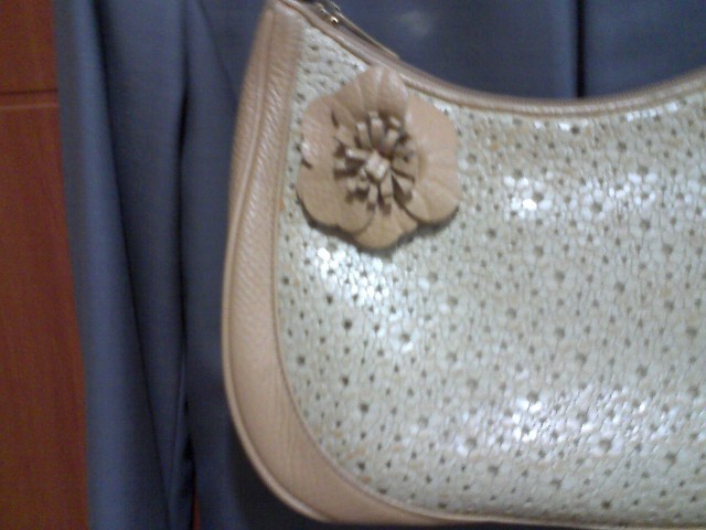 핸드백은 정장과 너무 잘 어울리는 예쁘고 상큼한 거 ~  작아도 아주 고가 에요 ^^