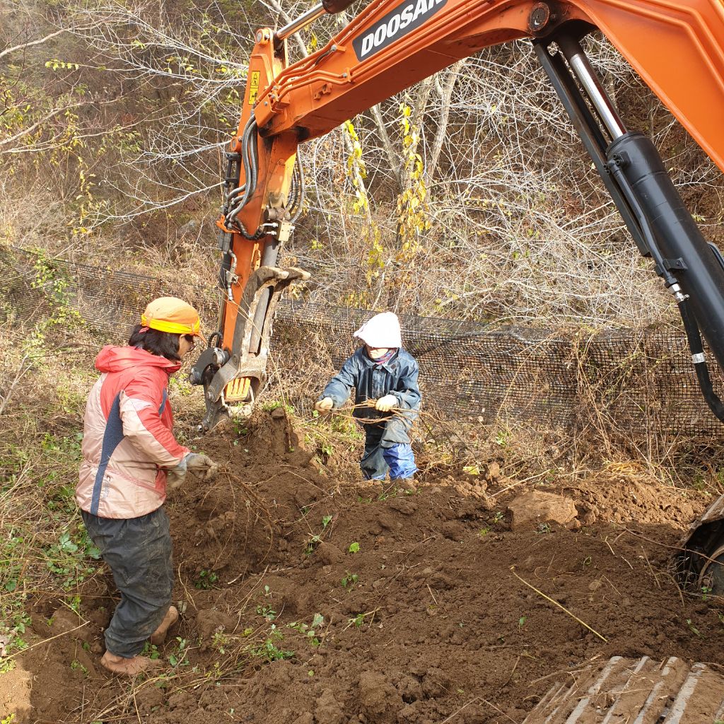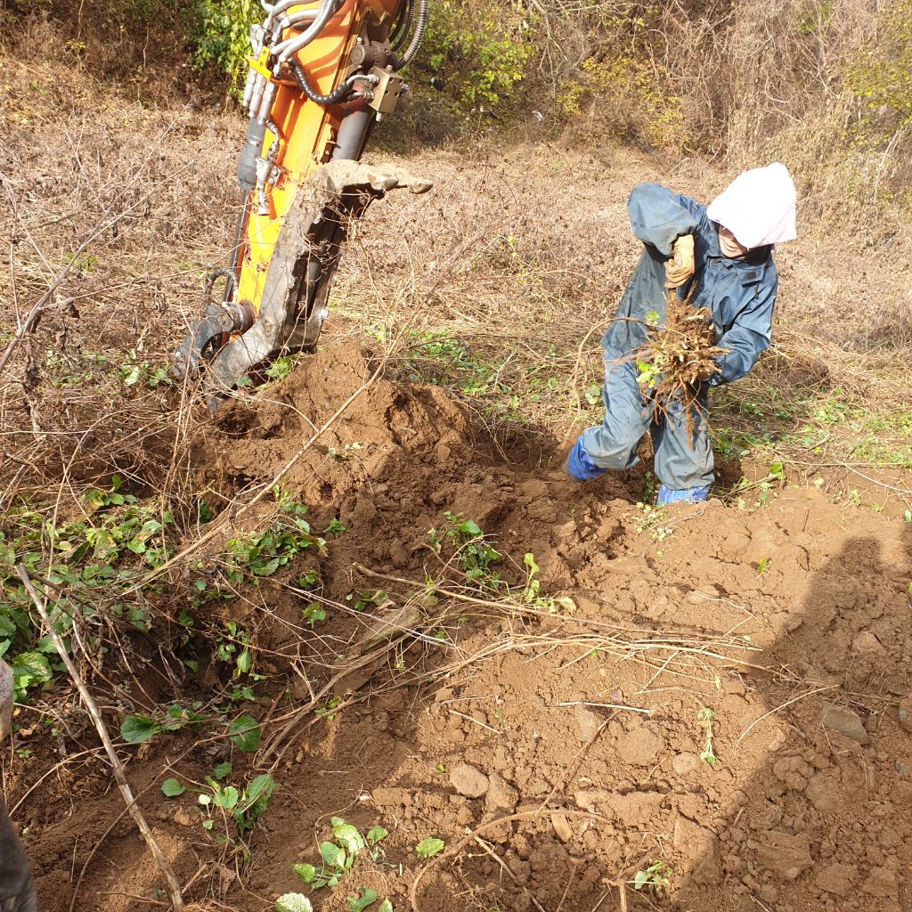 포크레인으로 깊이파서 황기를 수확해요 힘든작업 입니다