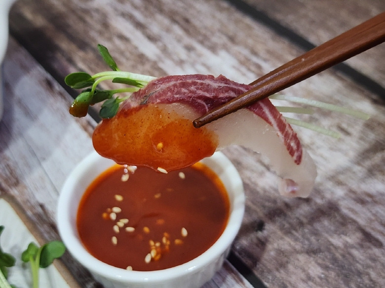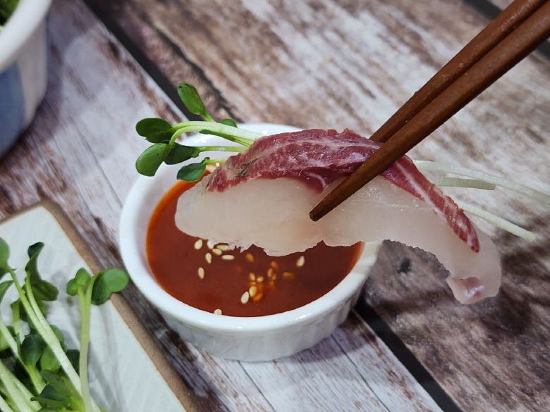 ✔ 기름진 회감에 초장 콕.