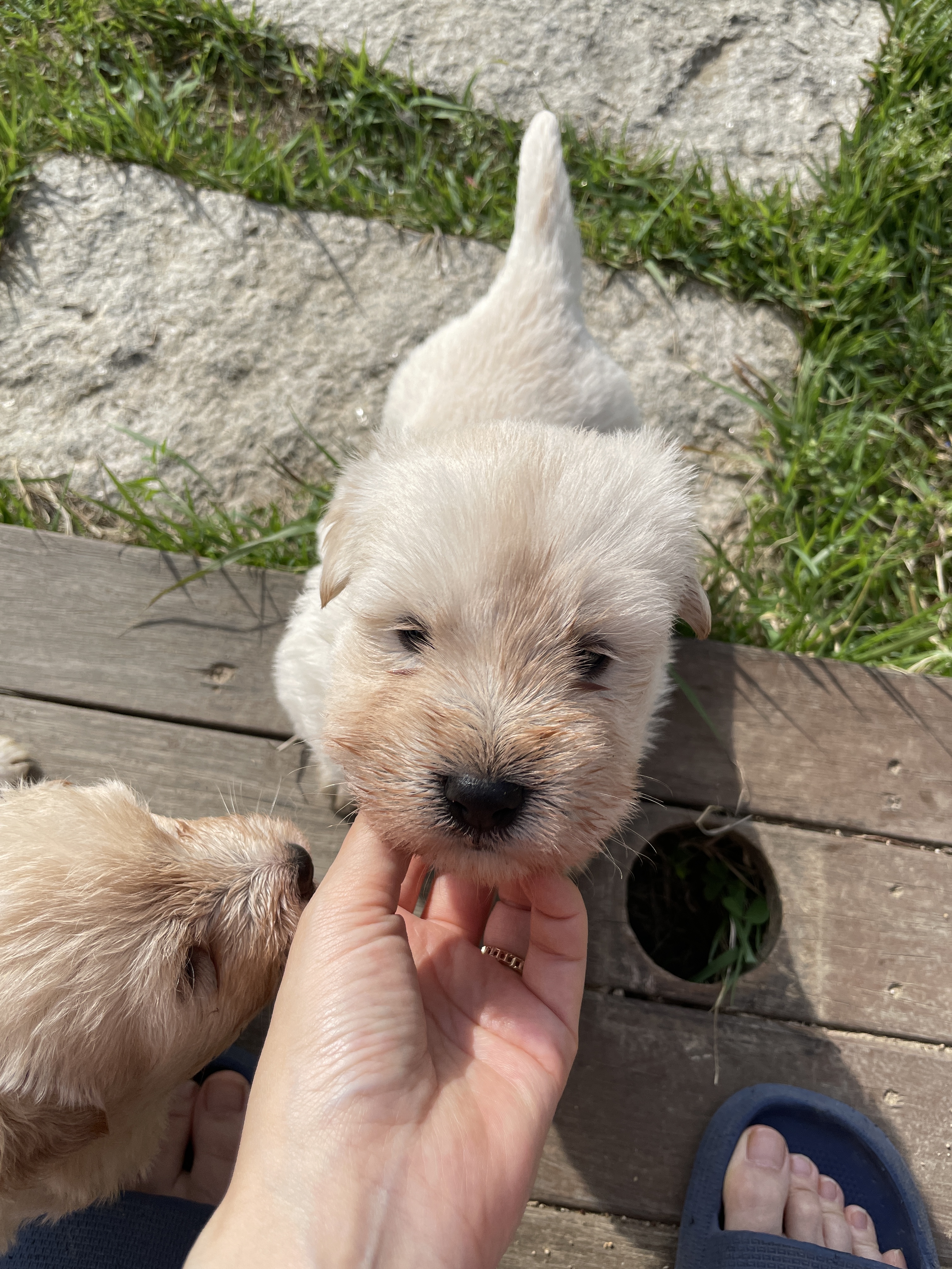 자동물 모색 :흰색, 크림색 삽사리 아기