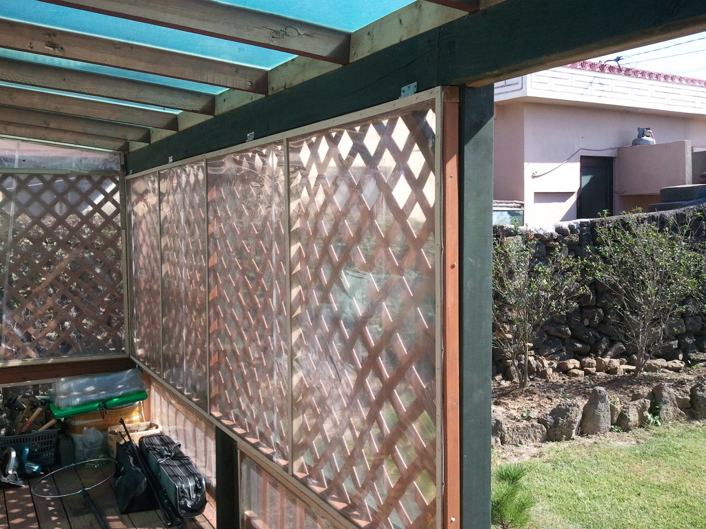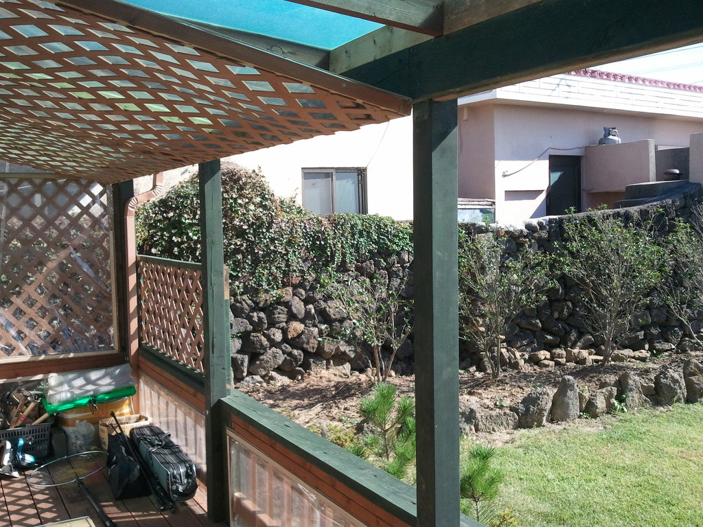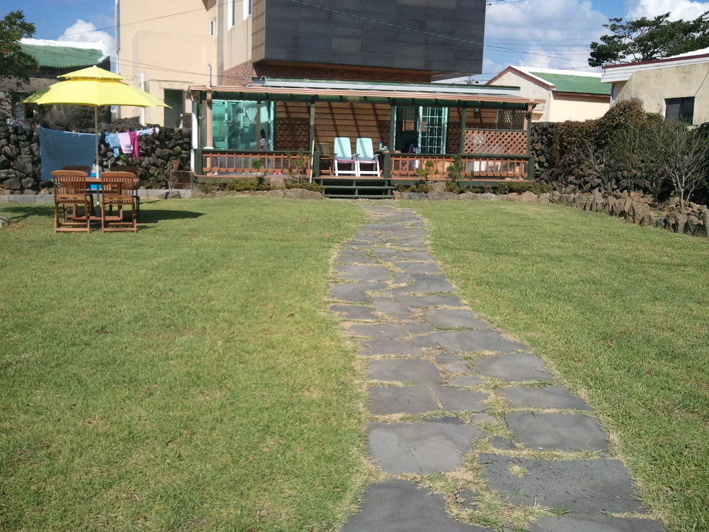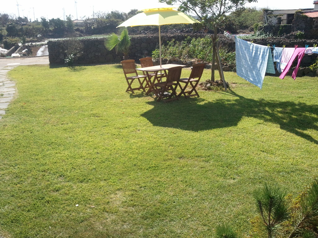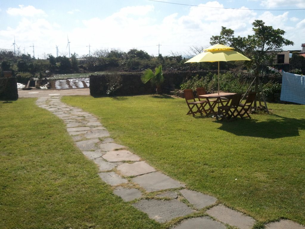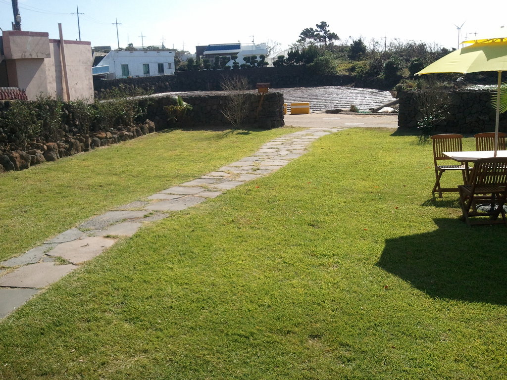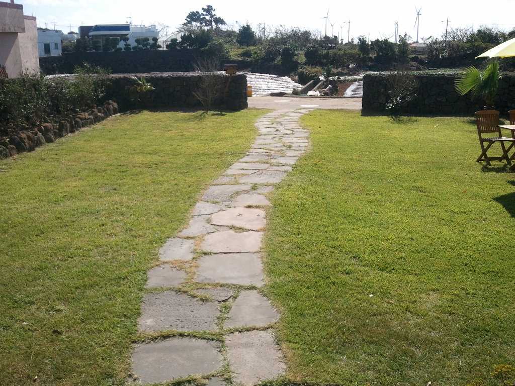저희가 와서 잔디를 심어서 지금은 완전히 뿌리를 내렸으며, 돌담도 저희는 겹담