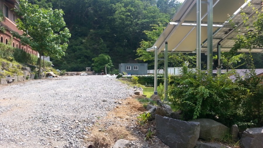 공장지붕이랍니다 이번에 태양열공사를 한 흔적들이구요~