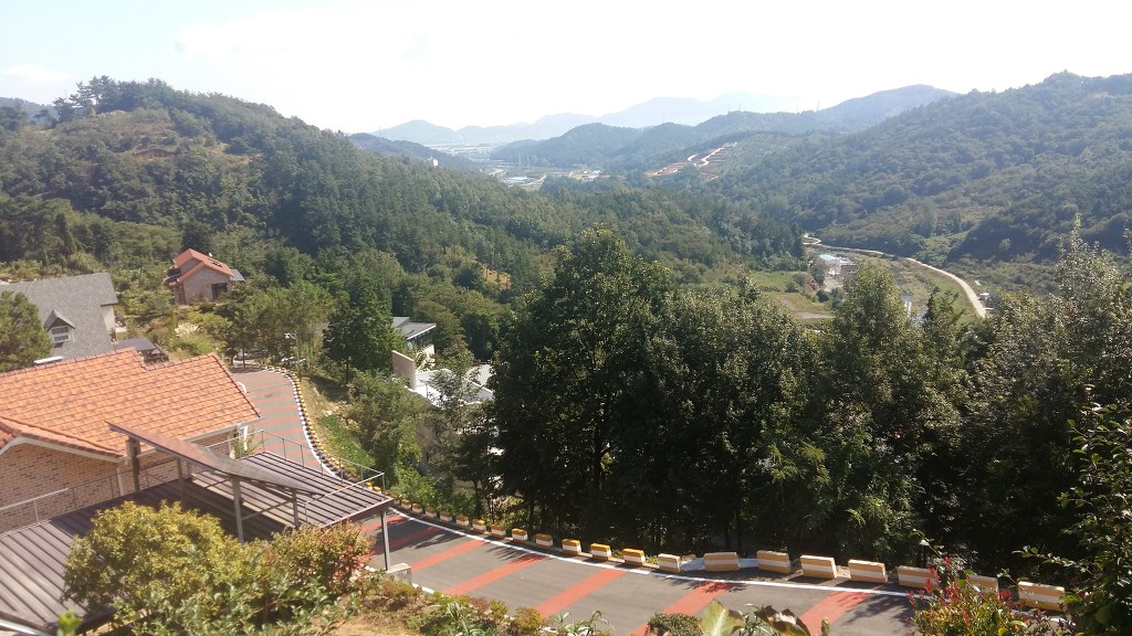 (2) 해발 100미터 지대이며 숲속에 위치. 멀리 순천만 일부 조망