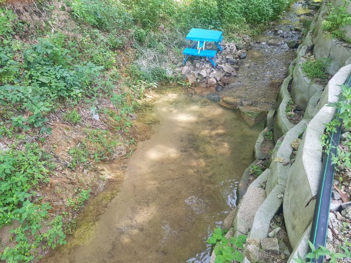 여름 밤나무 옆으로 맑은 하천은 아이들의 물놀이터 ...