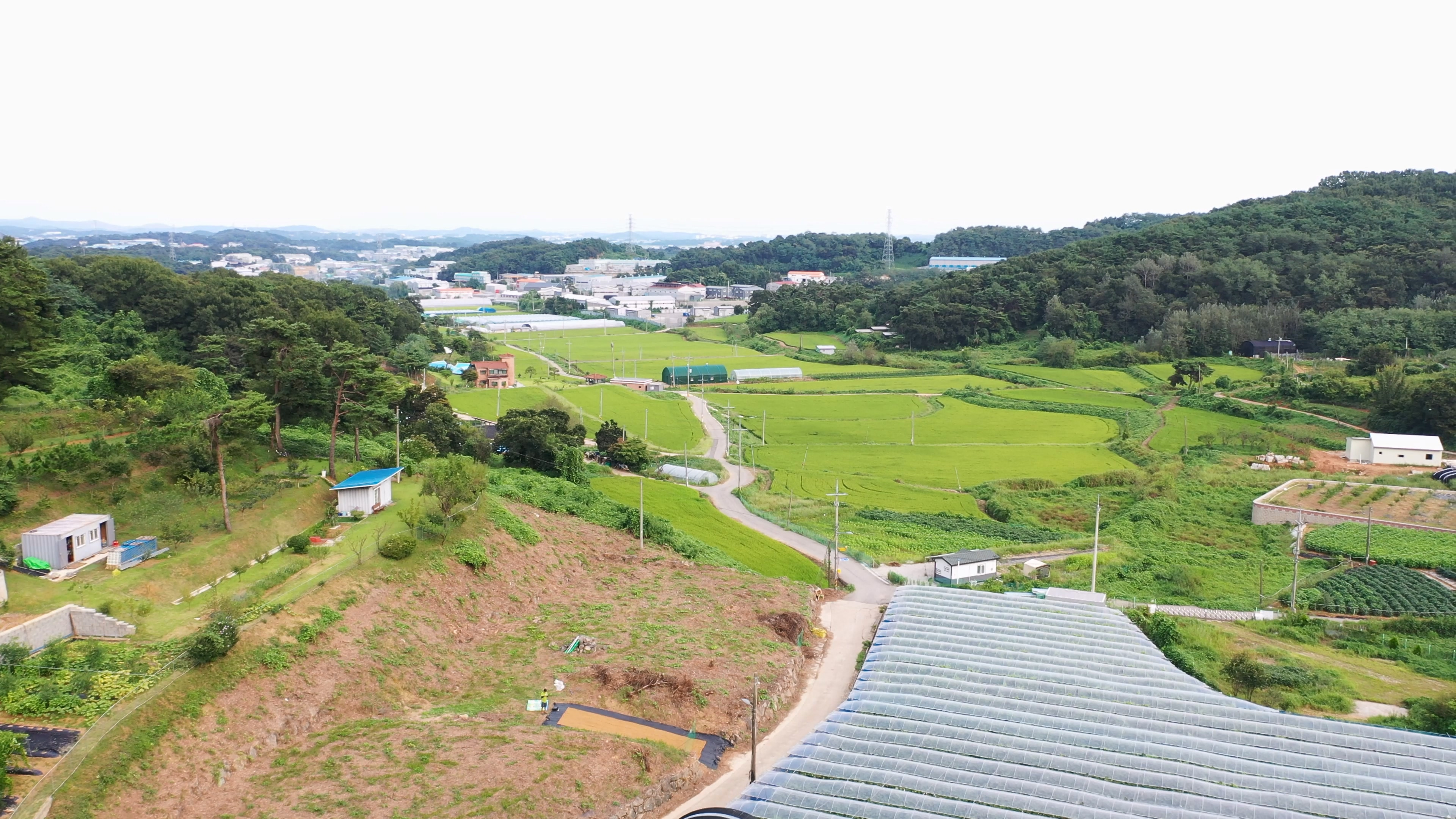 - 남향의 해당 부지를 둘러싼 얕은 능선이 서해에서 불어오는 바람을 은은하게 막아주는 덕분에
