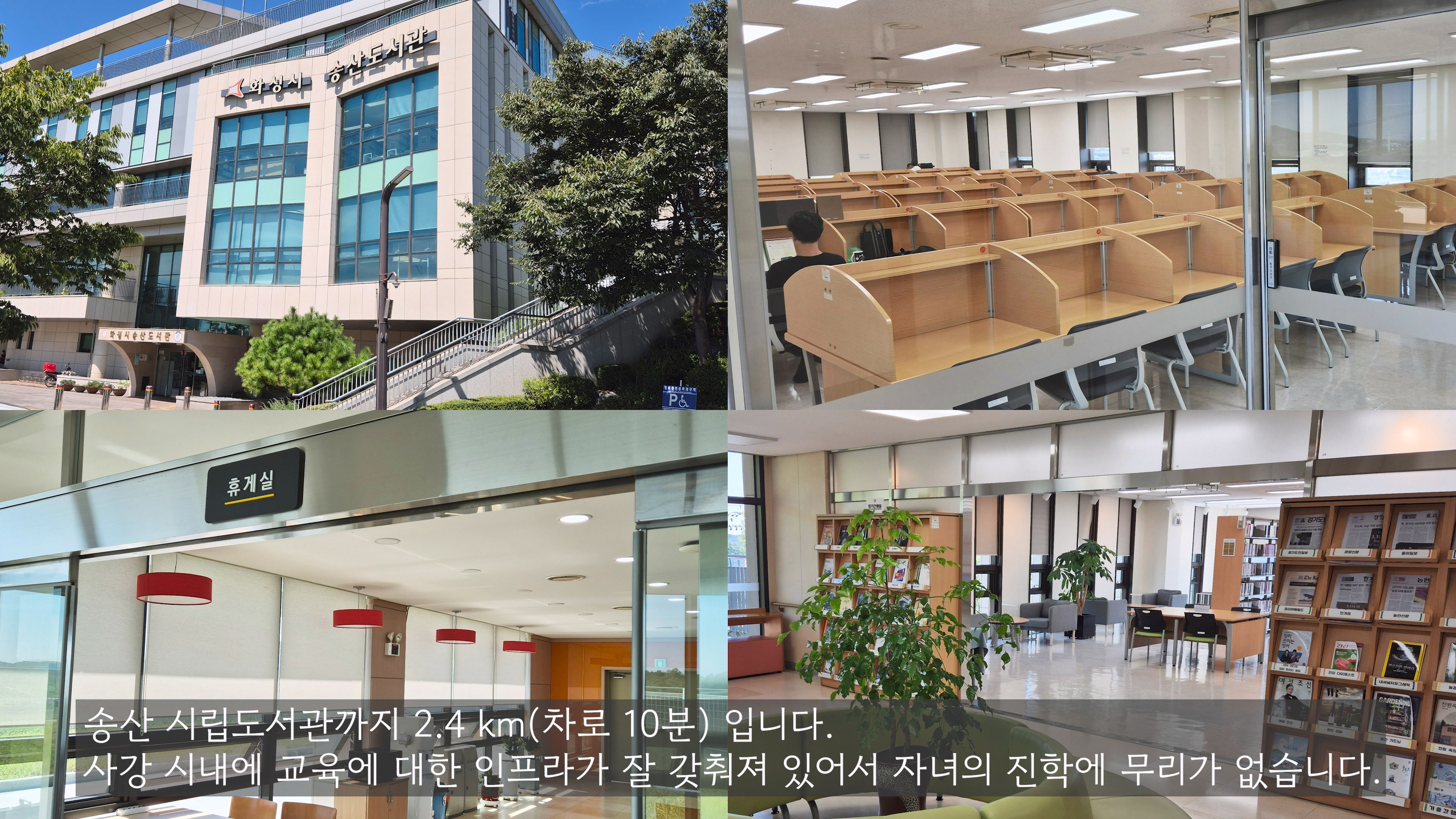 - 병설유치원, 초등학교까지 차로 6분 거리(중학교, 고등학교, 시립도서관은 10분)여서