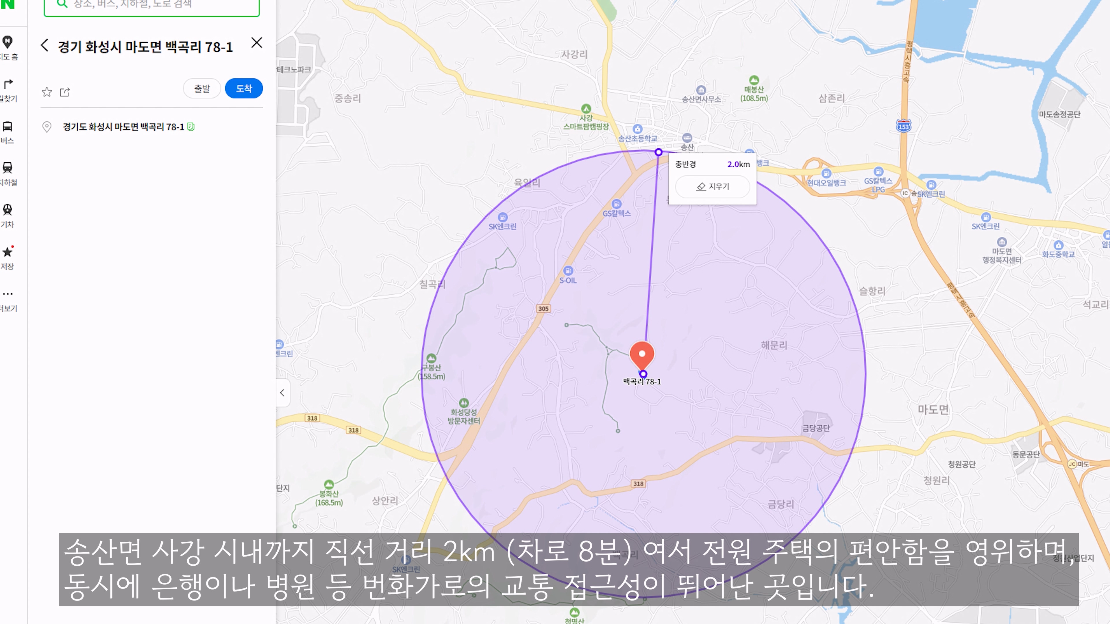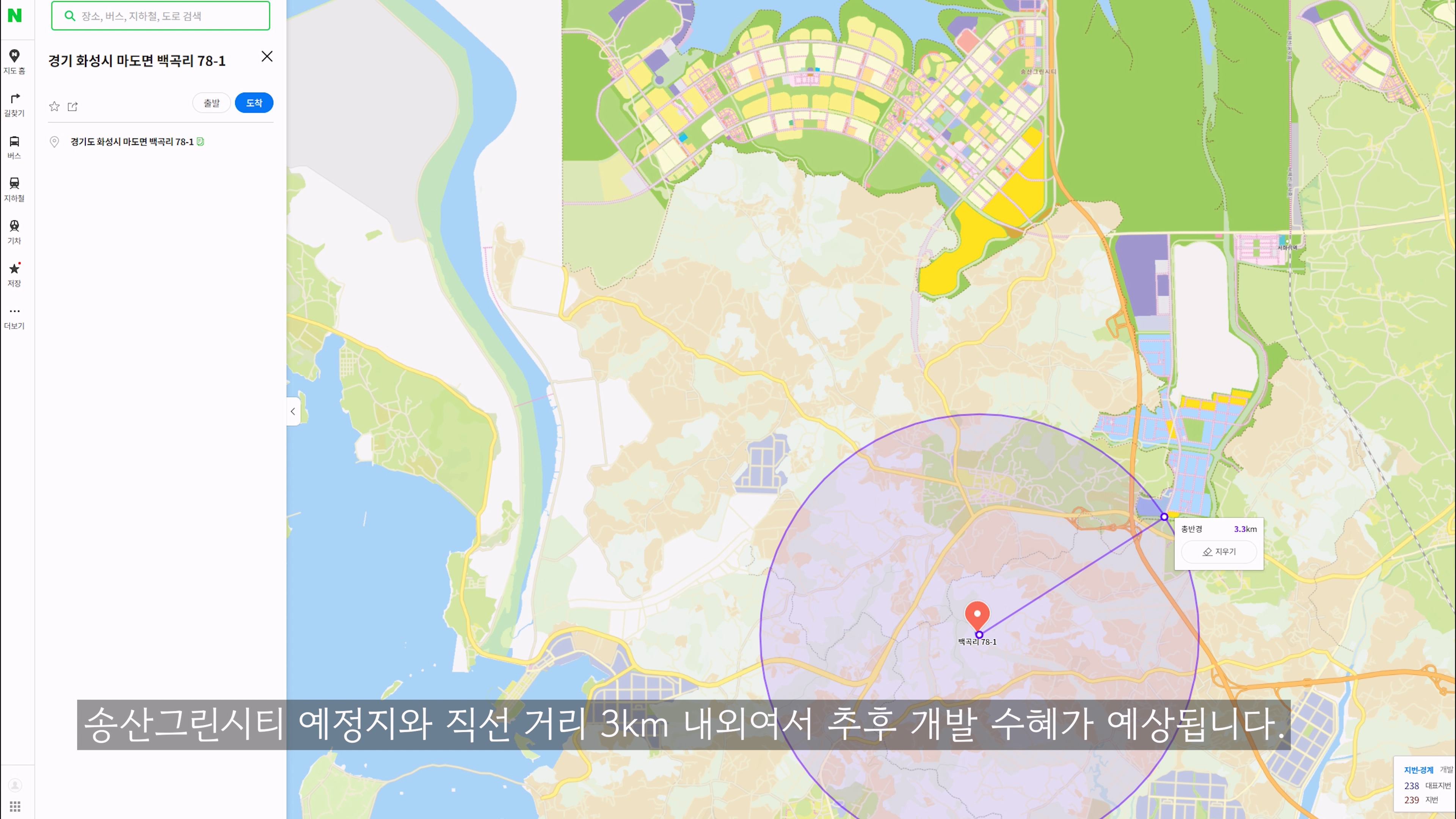 - 송산 그린 시티 남측 지구까지 직선 거리 3km 내외로 수혜 지역으로,
