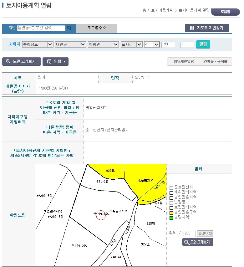 물건 소재지(번지기재 필수. 미기재시 강등됨): 충남 태안군 이원면 포지리 산199-1