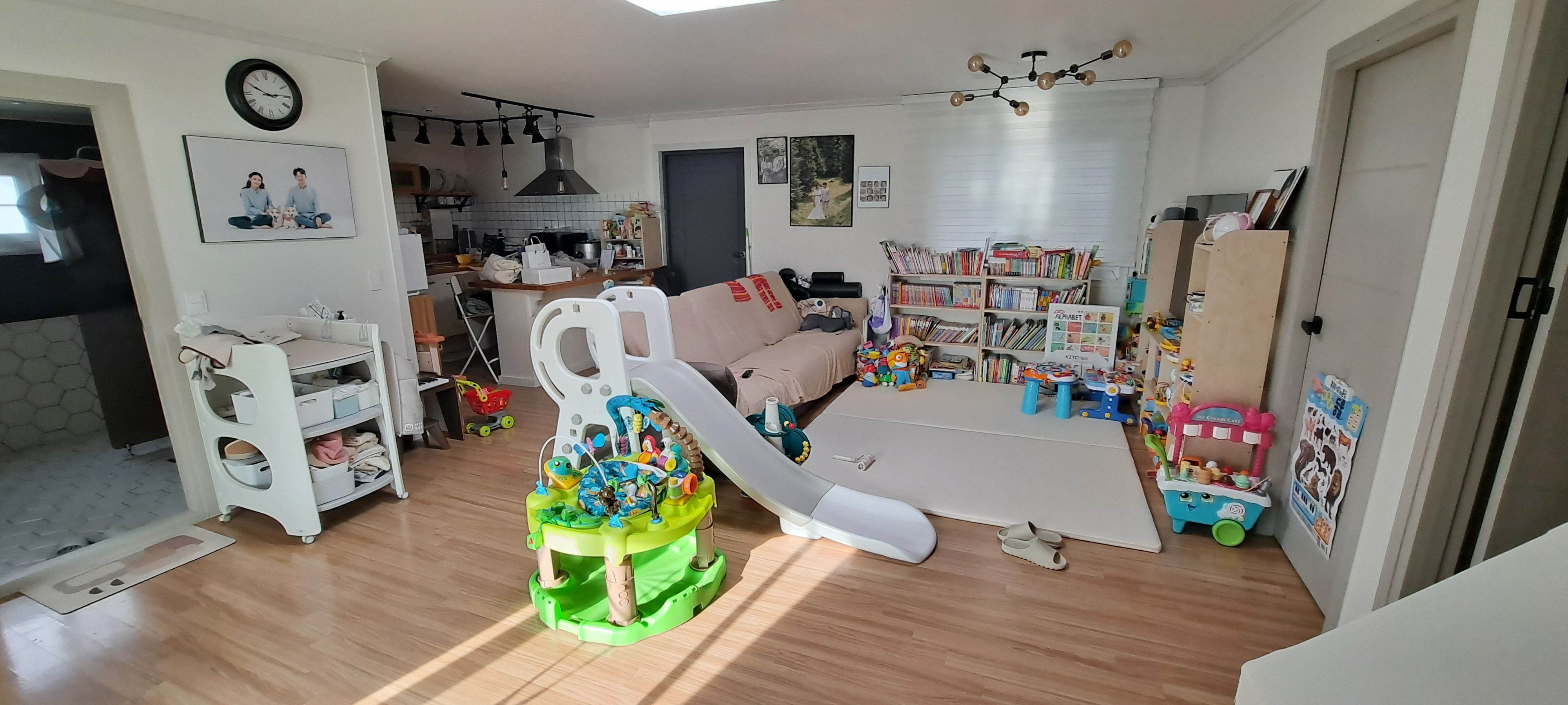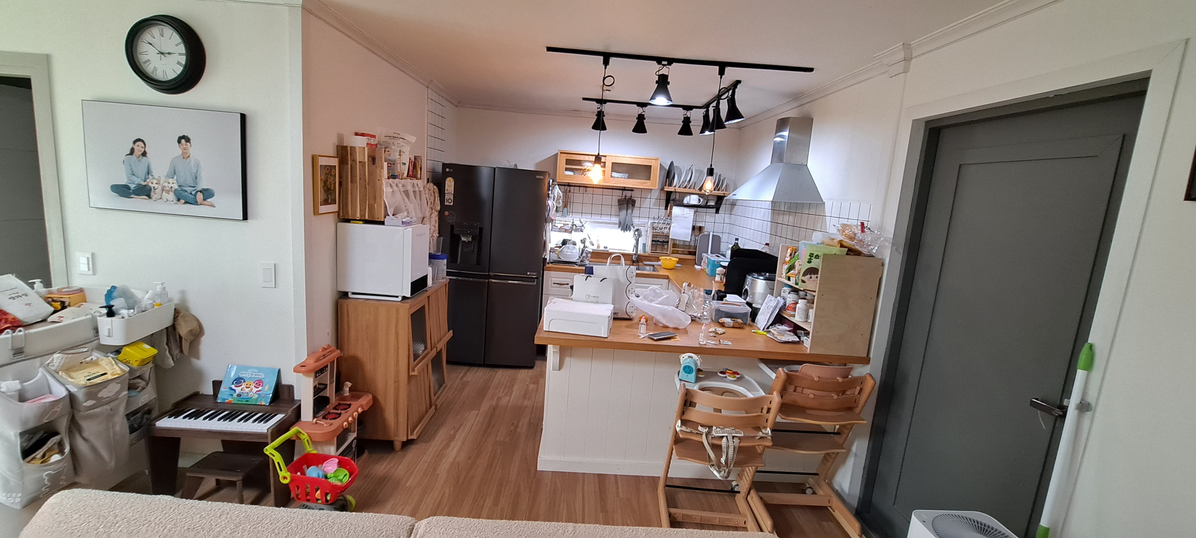 *방(3), 넓은거실, 주방, 화장실(1), 다용도실(보일러실과 창고겸용)