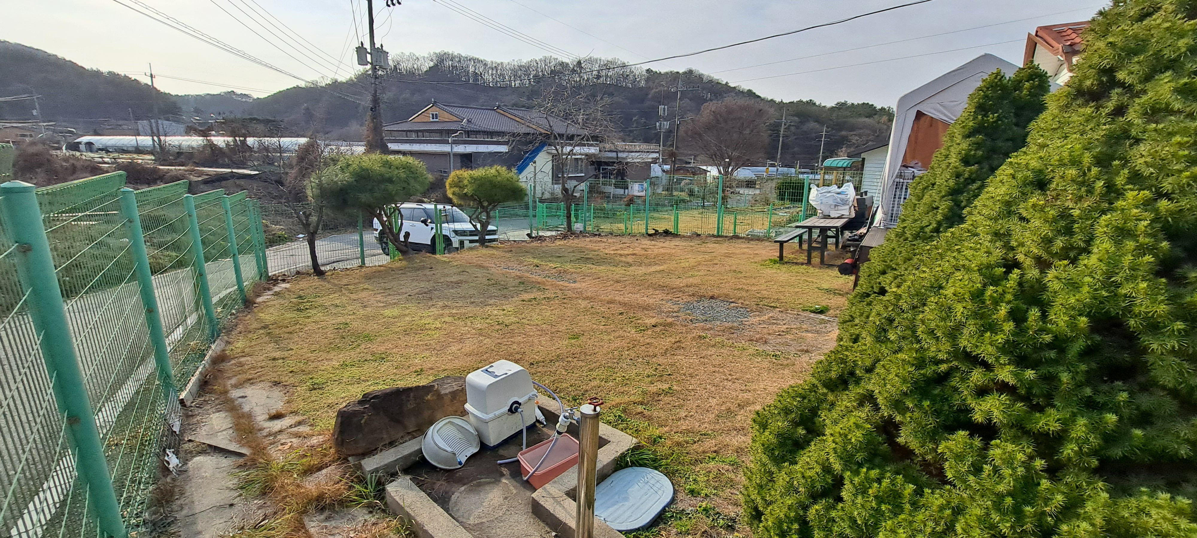 -넓은 잔디마당에서 반려견과 마음껏 뛰어놀수있게 마당주위에 휀스를 설치하였슴