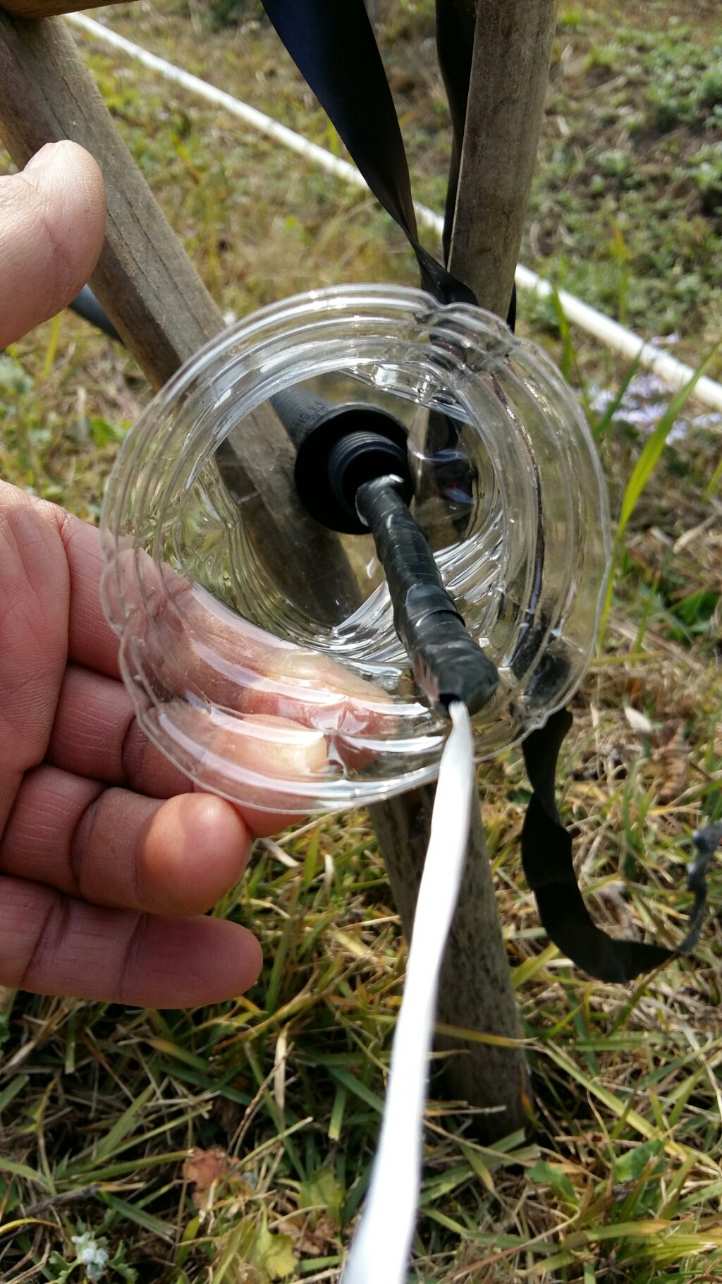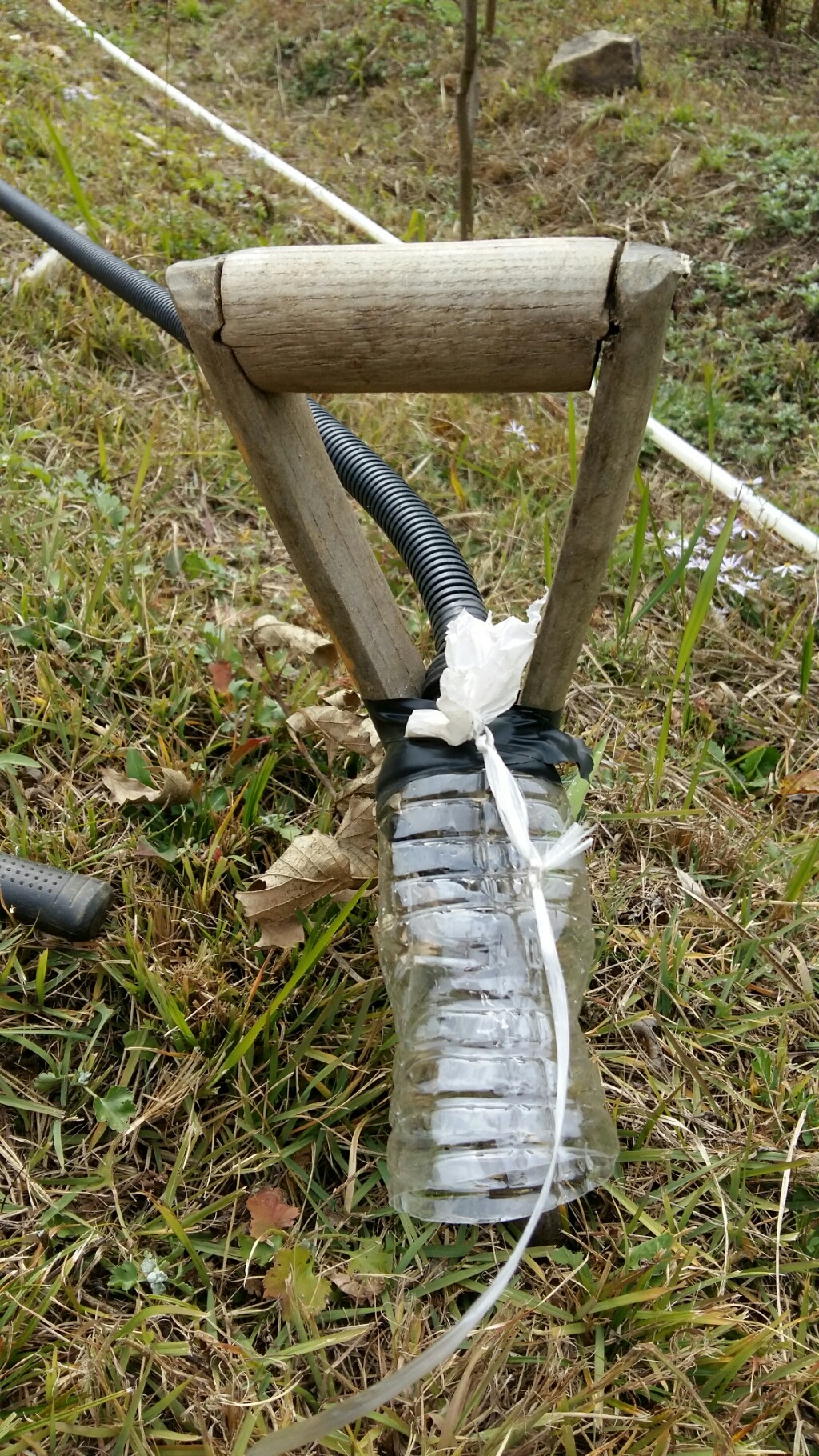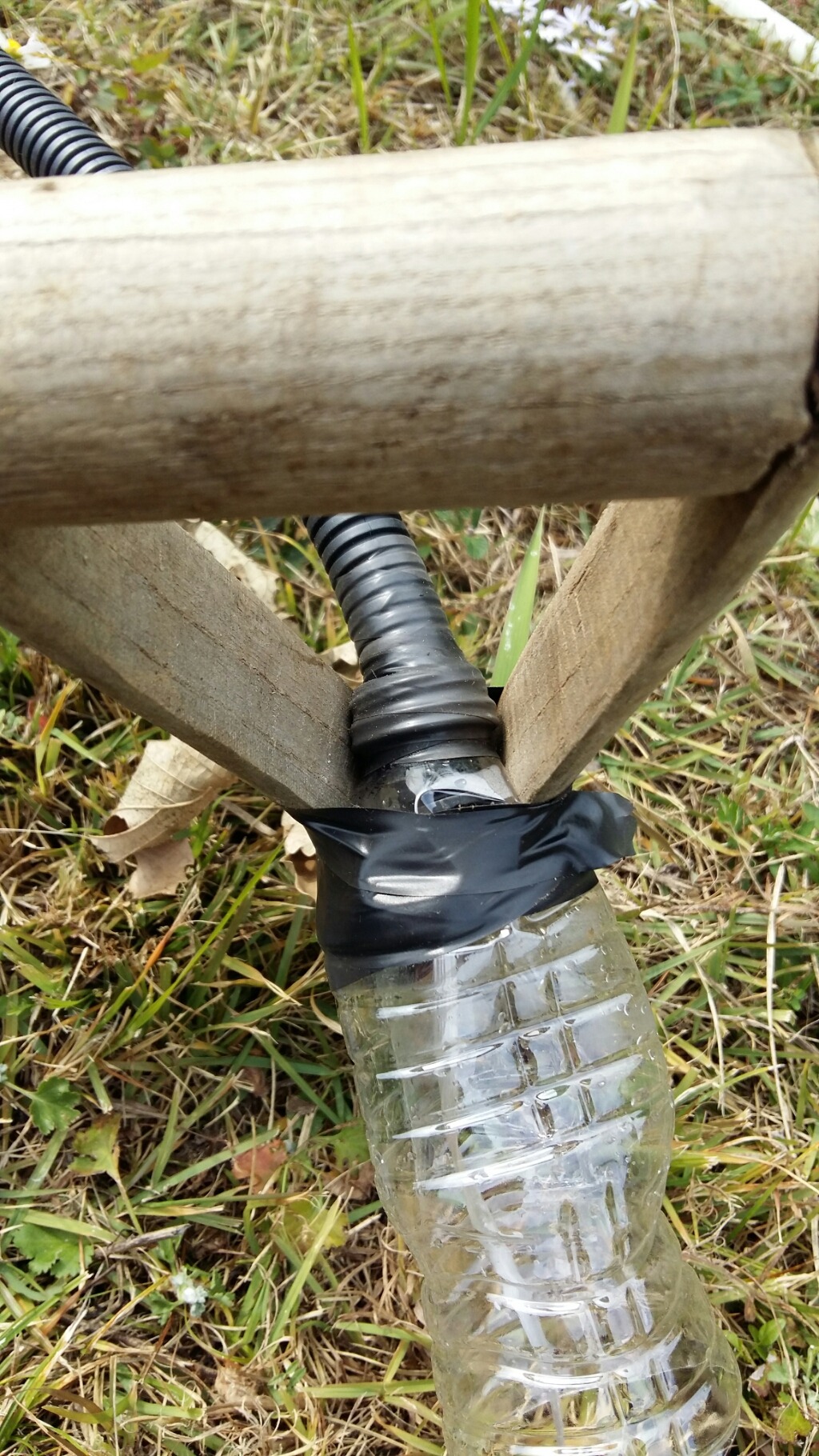 흡입시 빨려들어 가면서 걸리는 것을 예방하기 위해 주름관에 작은 물병을 짤라서 테이프로 동여맵니다.