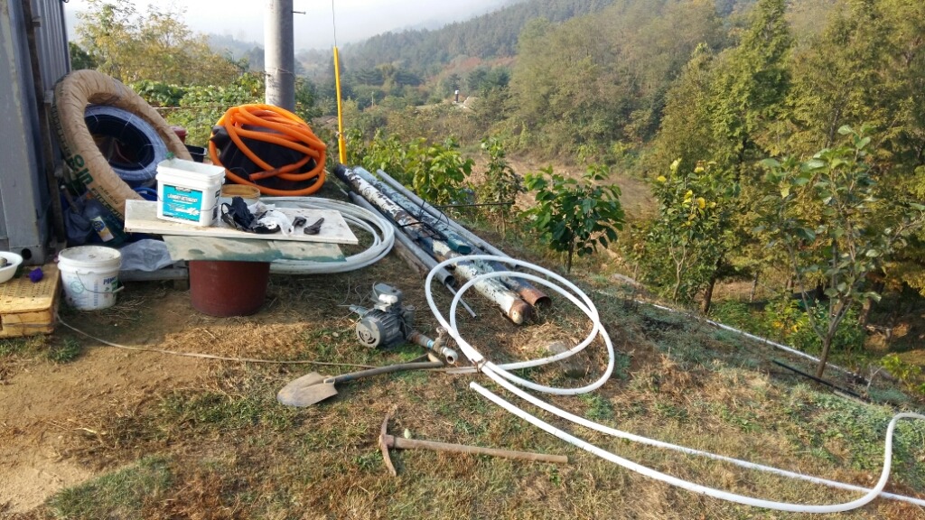 지하수관정 100m 심정펌프가 고장나는 바람에 고장수리를 하고, 진입로를 넓히면서 새로운 전기배선 60m를 땅에 묻으면 수분으로 인한 누전이 염려되어 전기배선 보호주름관을 이용해야 하는데 60m주름관에 60m전기배선을 넣는 방법이 마땅치 않다.