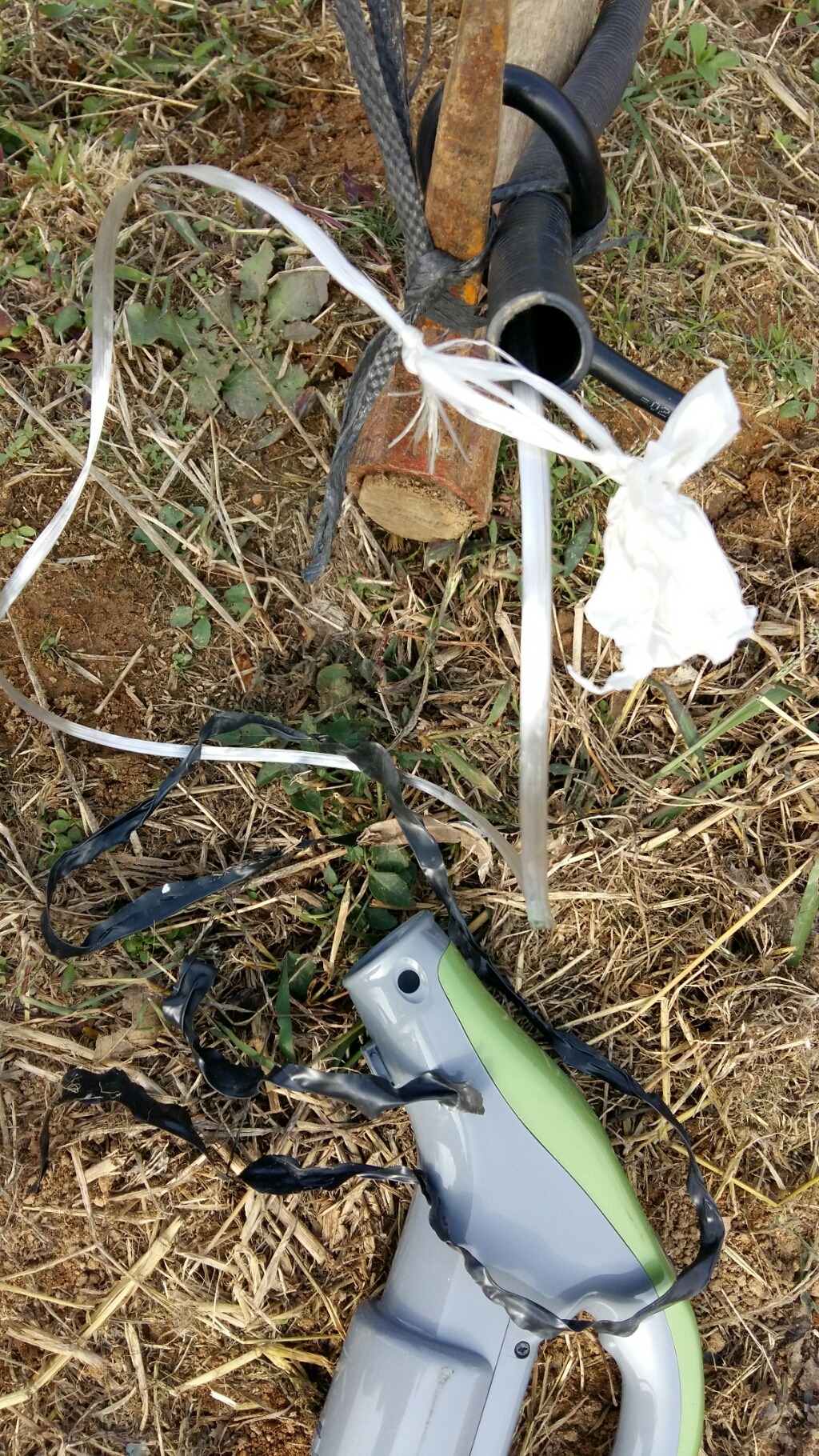 그 질긴 줄에 잔기배선을 몇차례 매듭을 짓고 빠지지 않토록 테이프로 동여맵니다.