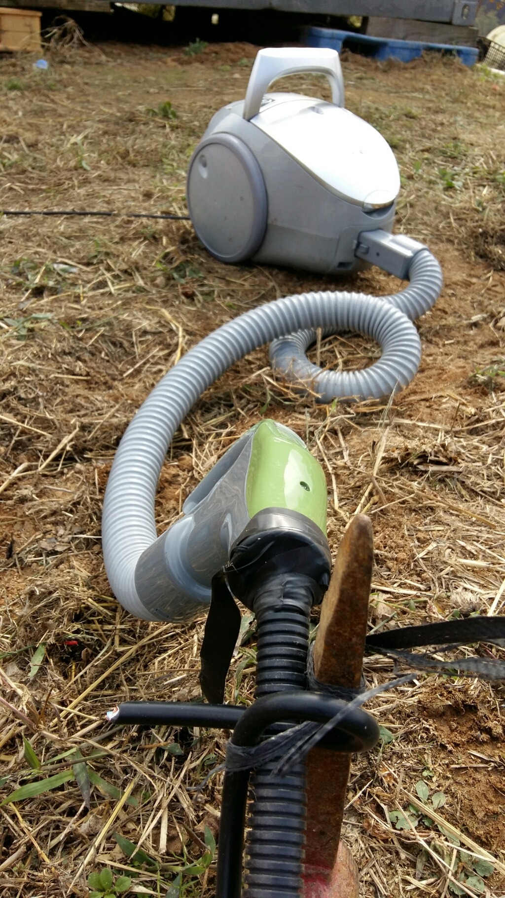 공기가 새지 않토록 단단히 테이프로 붙친다음 진공청소기를 이용해서 줄을 흡입합니다.