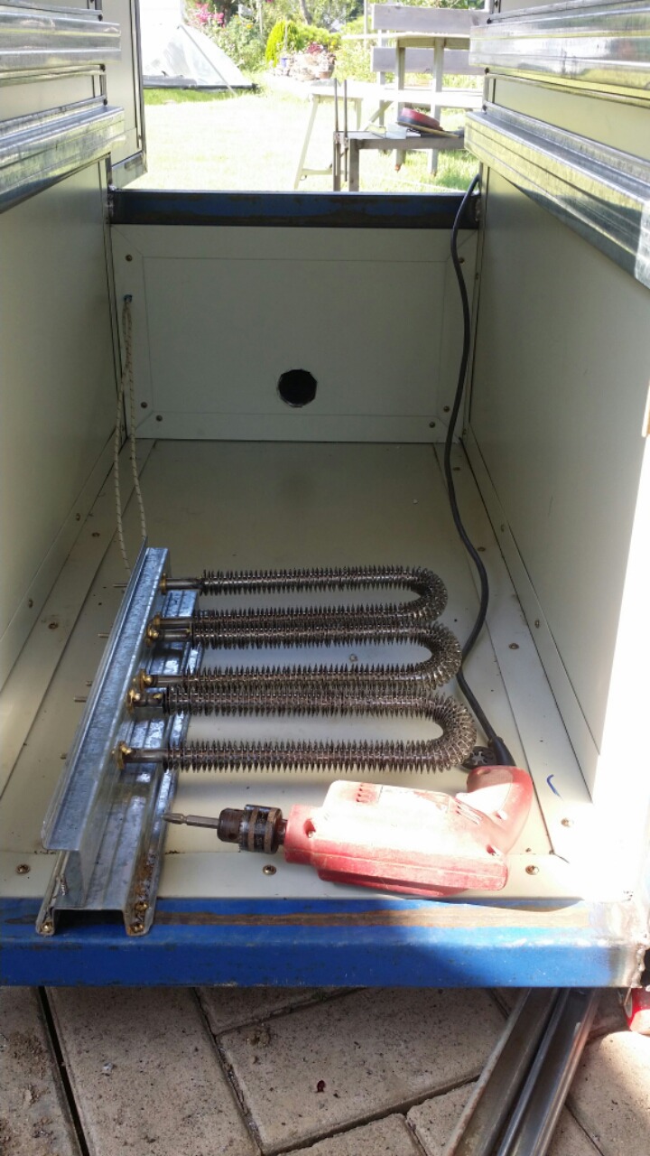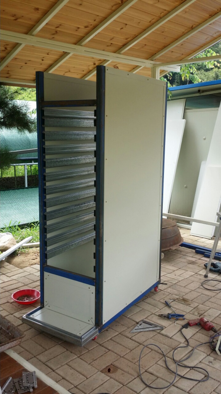 집에있는 자제들과 필요한 부품들 디지털온도조절기,송풍기,핀히터 1키로짜리 3개 .마그네트,누전차단기.히터전용선,40미리 센드위치판넬 등등을 준비하고 7일만에 드디어 완성을했다.