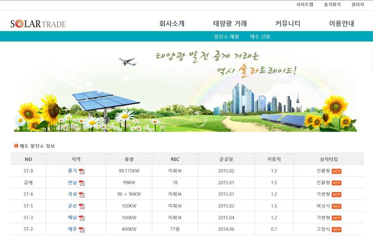 1. 저희 SOLAR TRADE를 방문하시어 전국 각지에 분포하고 있는 태양광 발전소를 가질 수 있는 기회를 누리십시요. ^^