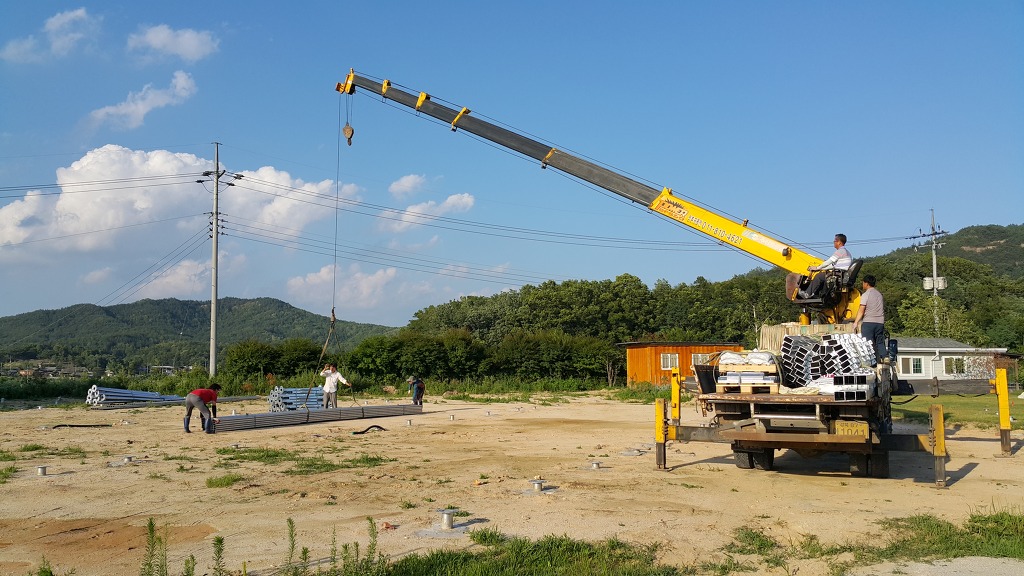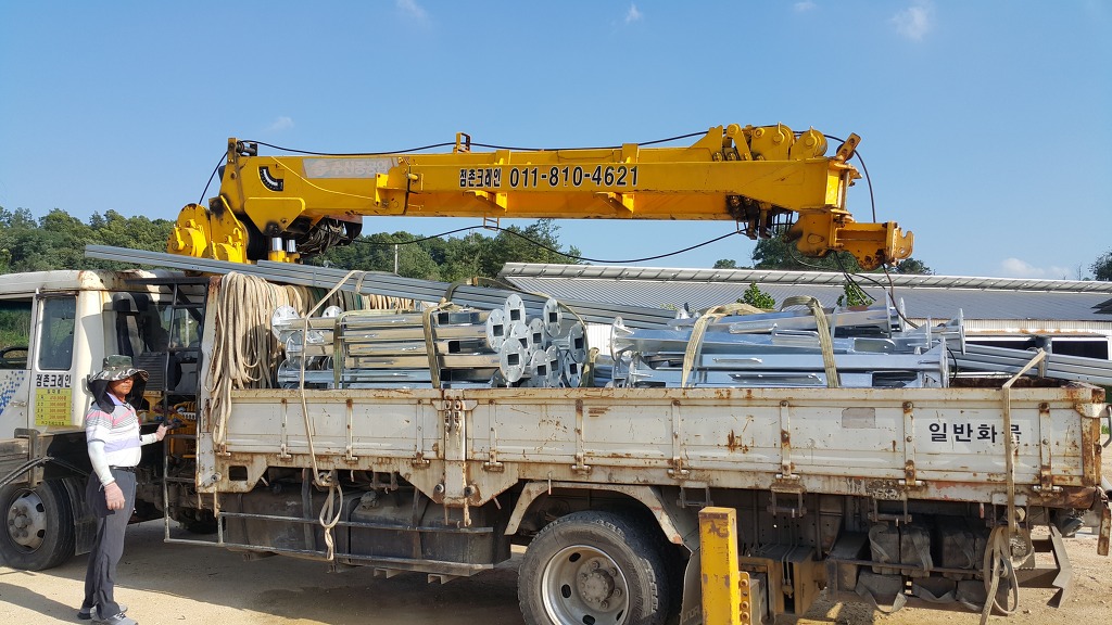 구조물이 제작공장에서 현장까지 여러이유로 11톤 트럭에 실려왔는데