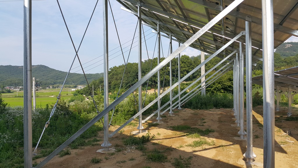 고정형(4*14) 기초,기둥과 어레이 시공 상황입니다.