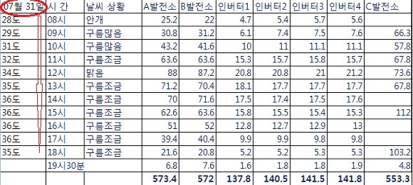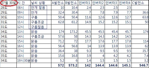 여기서 주의할 점은 타지역의 발전량 비교는 날씨와 주변환경의 영향을 많이 받으므로 참고의 가치는 별로 없습니다.