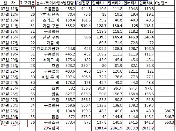 발전량이 많은 맑고 더운 날 발전량이 많다는 점인데요.