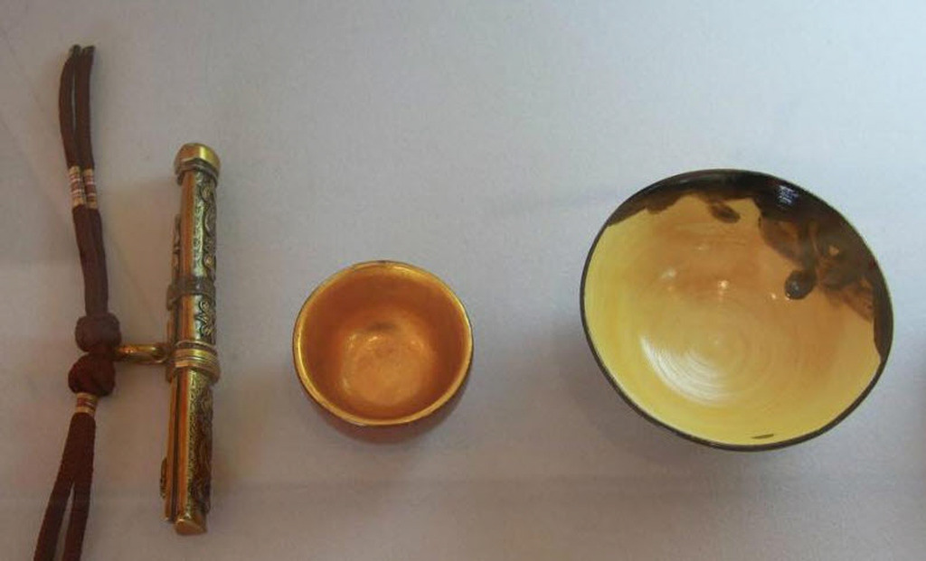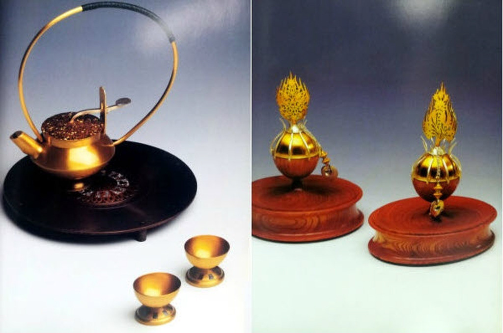 명인 구영국교수는 황칠(Golden lacquered areas)이 가미된 2개의 발우를 만들어 법정스님께 한벌을 드린반면, 소중한 한 벌은 본인이 소장하고 있다.