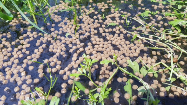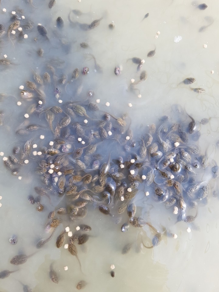 올챙이는 물고기 (양어용) 사료를 공급합니다.