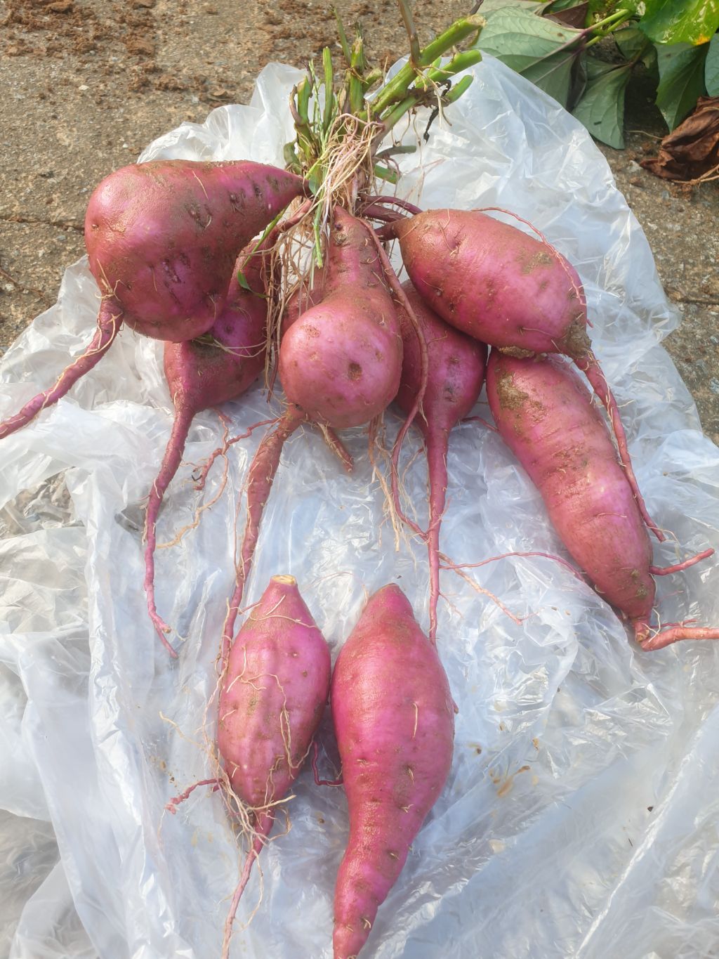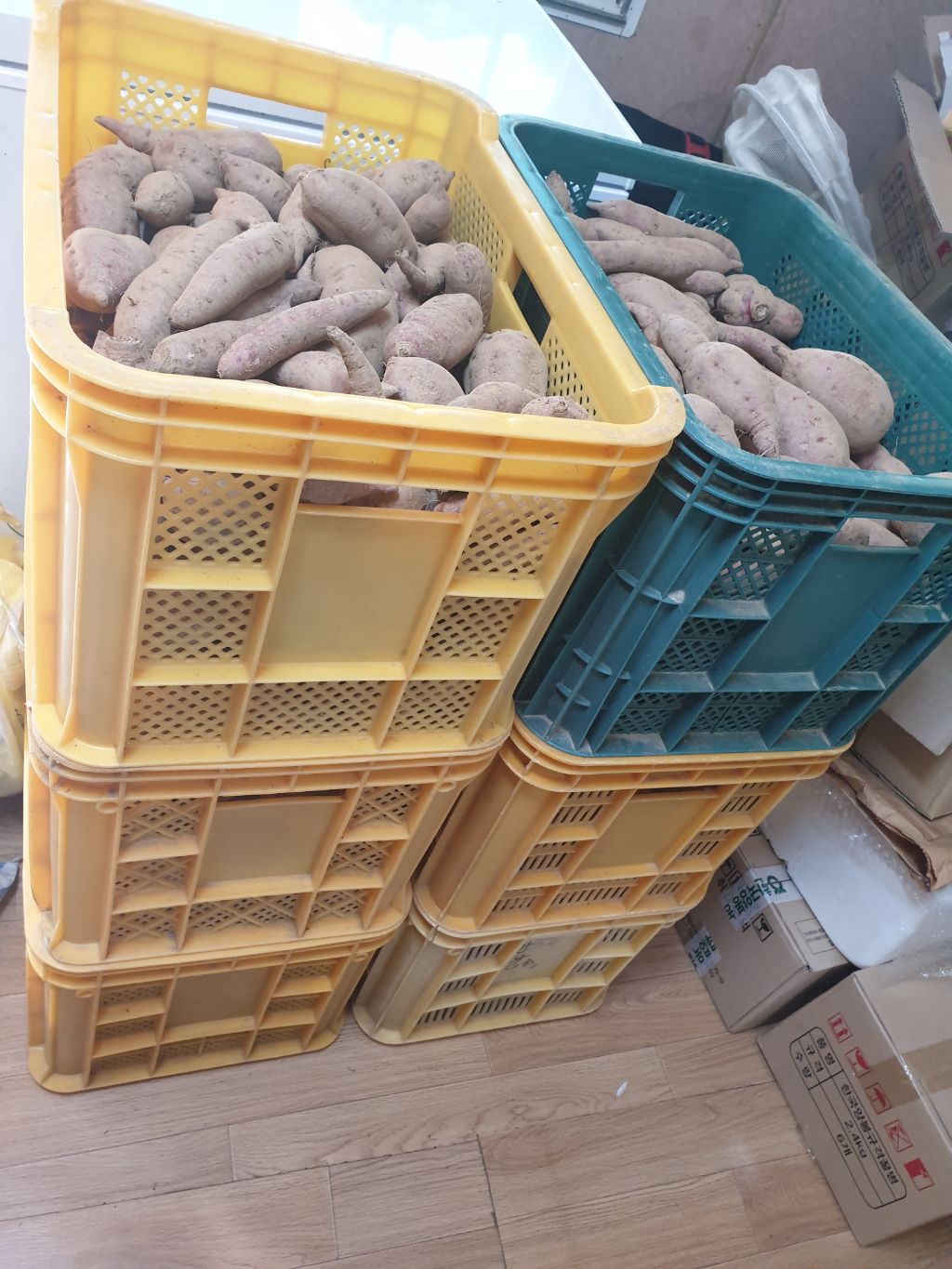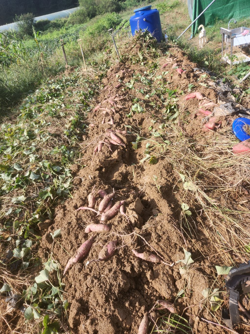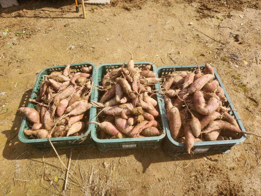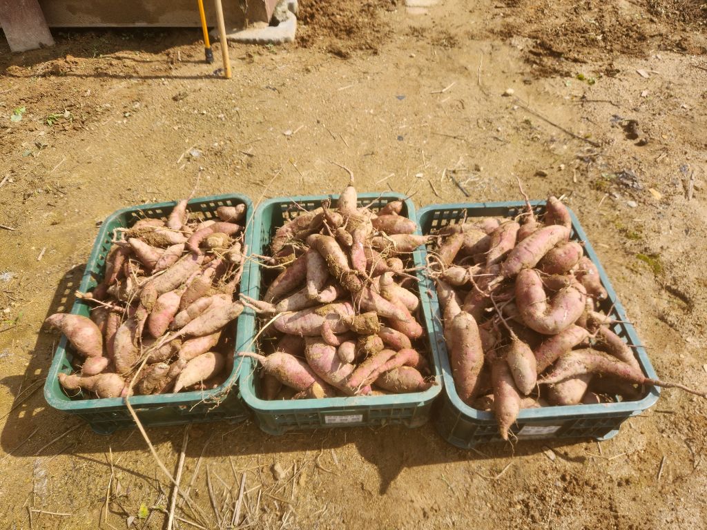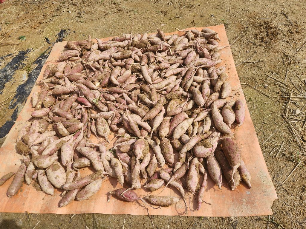 지난년도 보다 양도 적고 고구마도 상품성에서 떨어지지만 지난년도는 호박고구마 5단 심어서 2단정도 실패보고 3단정도로 배박스로 8박스 캔 양에 비교하면 많이 부족합니다