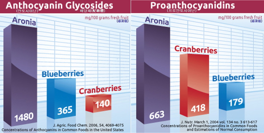 아로니아베리 가 안토시아닌(Anthocyanin) 성분을 비교했을때,