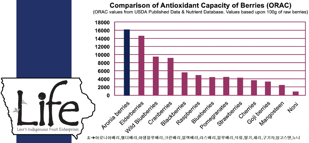 항산화 능력 , 활성산소 흡수용량을 측정 할경우 , 아로니아열매가 지금까지 기록된 성분분석한 식물중에