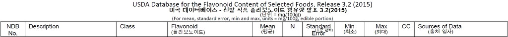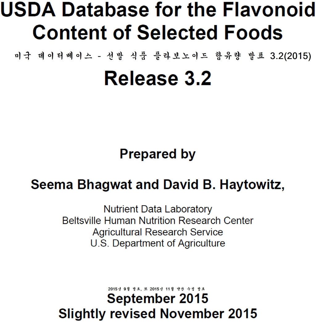 미국 데이터베이스에서 선발한 식품 플라보노이드 함유량 발표 3.2(2015) USDA Database for the Flavonoid Content of Selected