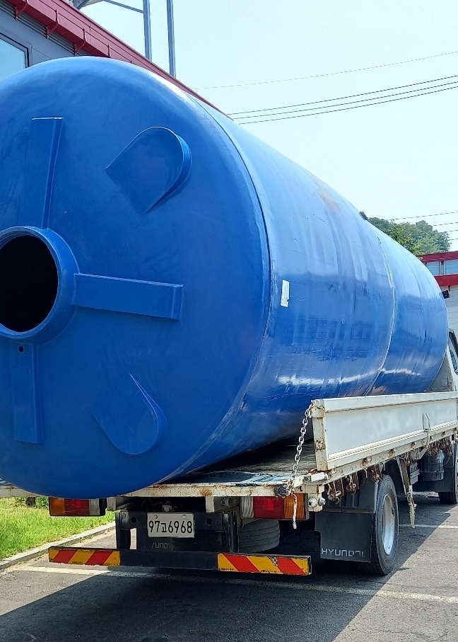중고 10 톤 물탱크 ㅡ 2.5톤 트럭에 2대 적재 후 운송