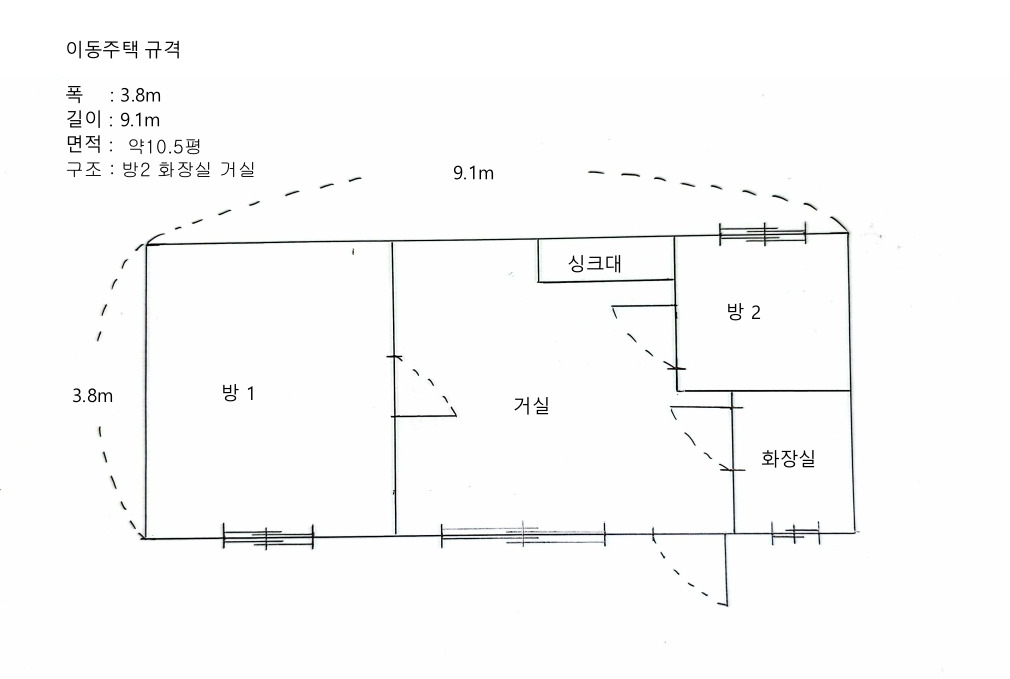 폭 3.8m, 길이 9.1m,
