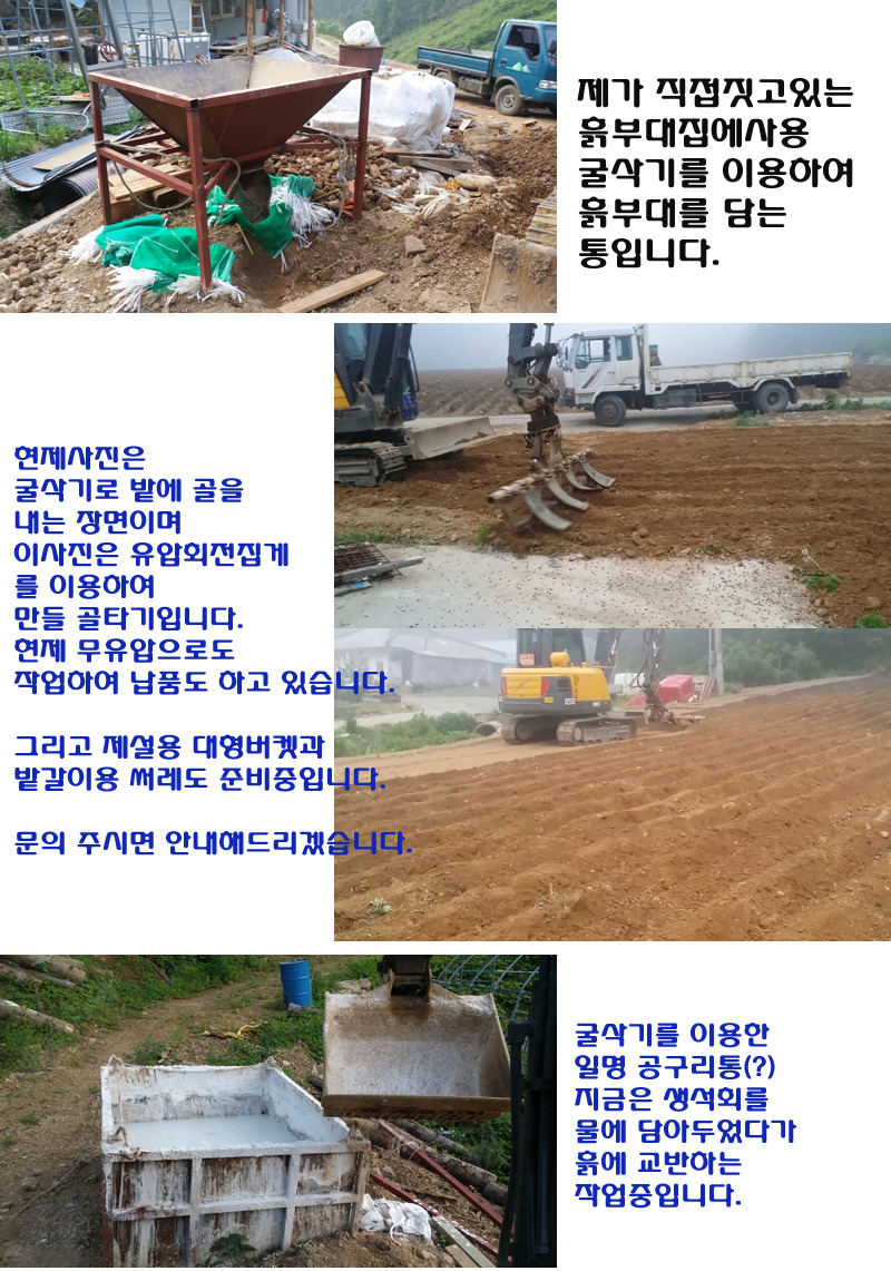 굴삭기용 제설버켓과 트렉터를 대용하는 밭갈이와 골타기등 완성되는대로 이곳에 올리겠습니다..