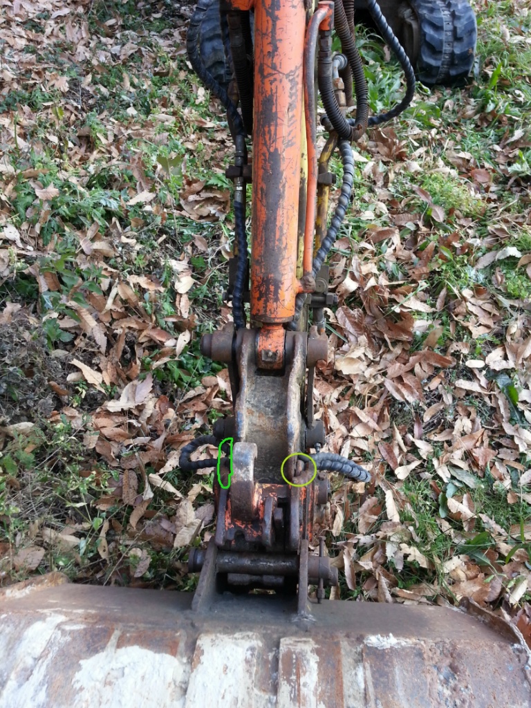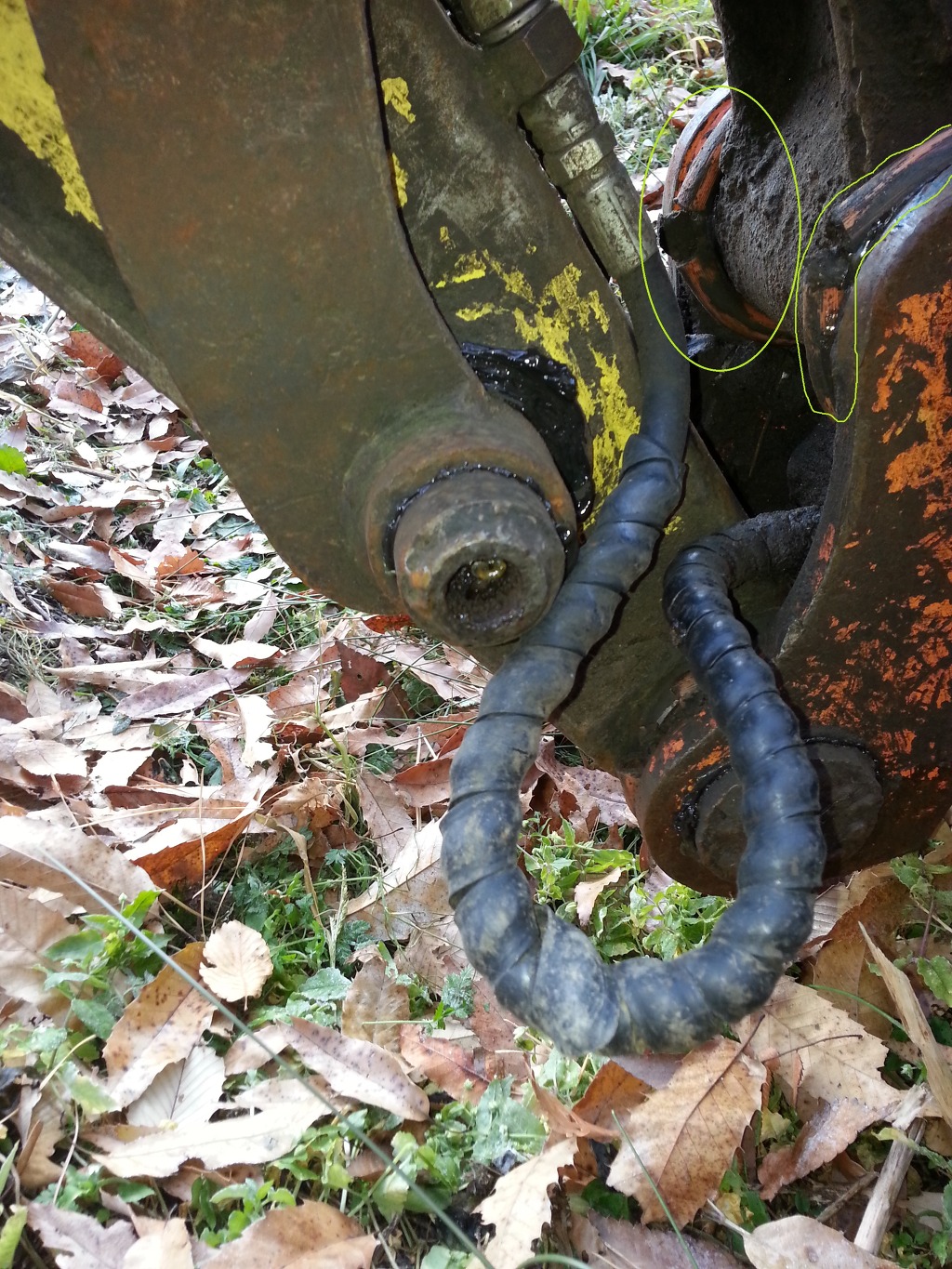 7. 바가지 잡아주는 붐대에 유격방지용 가스호스가 양쪽에 장착되어있는데... 원래는 부싱또는 고무링이 잡아주는게 맞죠?(사진보고 판단해 주세요)