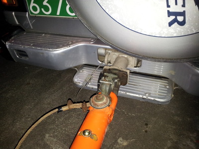 오래 탄 애마 갤로퍼에 견인고리를 구하고,