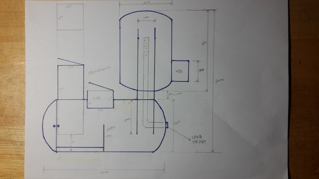 재료비 아끼기 위함도 있지만 원형으로 제작하면 열변형을 최소화 할 수 있을 것 같아 시골집에 있던 LPG통을 활용하기로 하고 그렸지요.