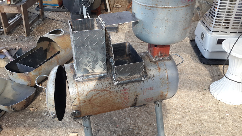 위 사진 난로 옆에 있는 은색 구이기도 비슷한 원리로 만들어 봤는데 공기의 자연순환원리로 숯불도 잘 피고 고기 익을때 나는 연기도 연통으로 빠지니 옷에서 냄새도 안나고 참 좋더군요. 조립식으로 되어 있어서 차에 싣고 다니기 편리합니다.