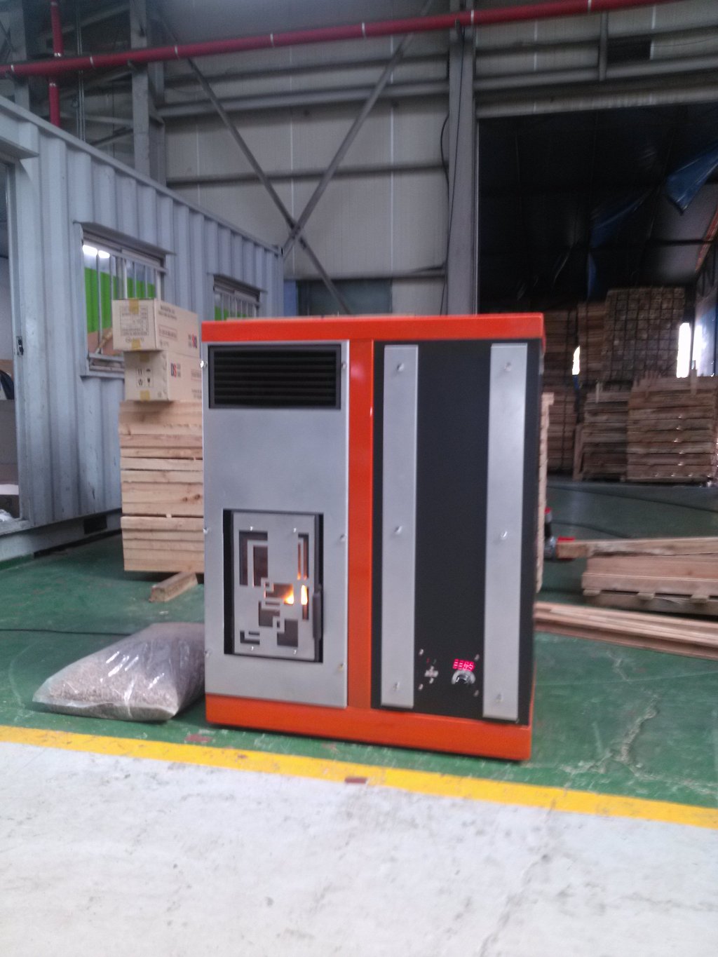 (주)그린에너지 솔루션의 주력제품인 '무연통 펠릿난로'입니다.