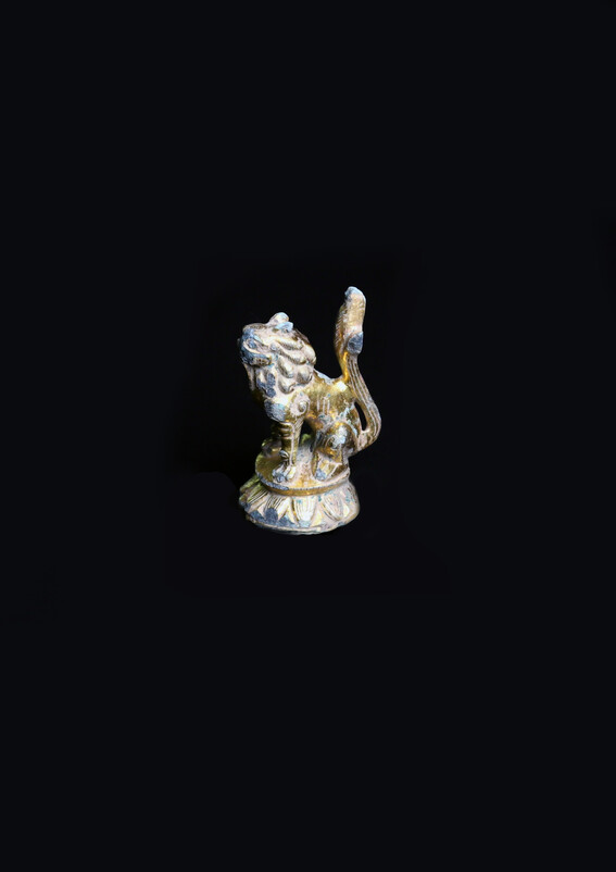 ○··· 얼굴 주위 갈기와 다리, 몸통 등이 정교하게 표현됐고, 세 갈래로 나뉜 꼬리는 위로 치켜 올라간 게 특징이다.고대 동아시아 공예사를 살펴보면, 작은 금동사자상은 불전 앞에 공양 도구로 쓰는 병향로 손잡이 끝부분 장식물로 쓰였다.