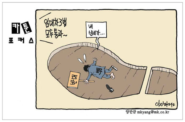 본 만평은 한국 네티즌본부에서 작성합니다. '경고: 변조 절대 금지' ☞ 원본 글: 매일경제| Click ○←닷컴가기. |