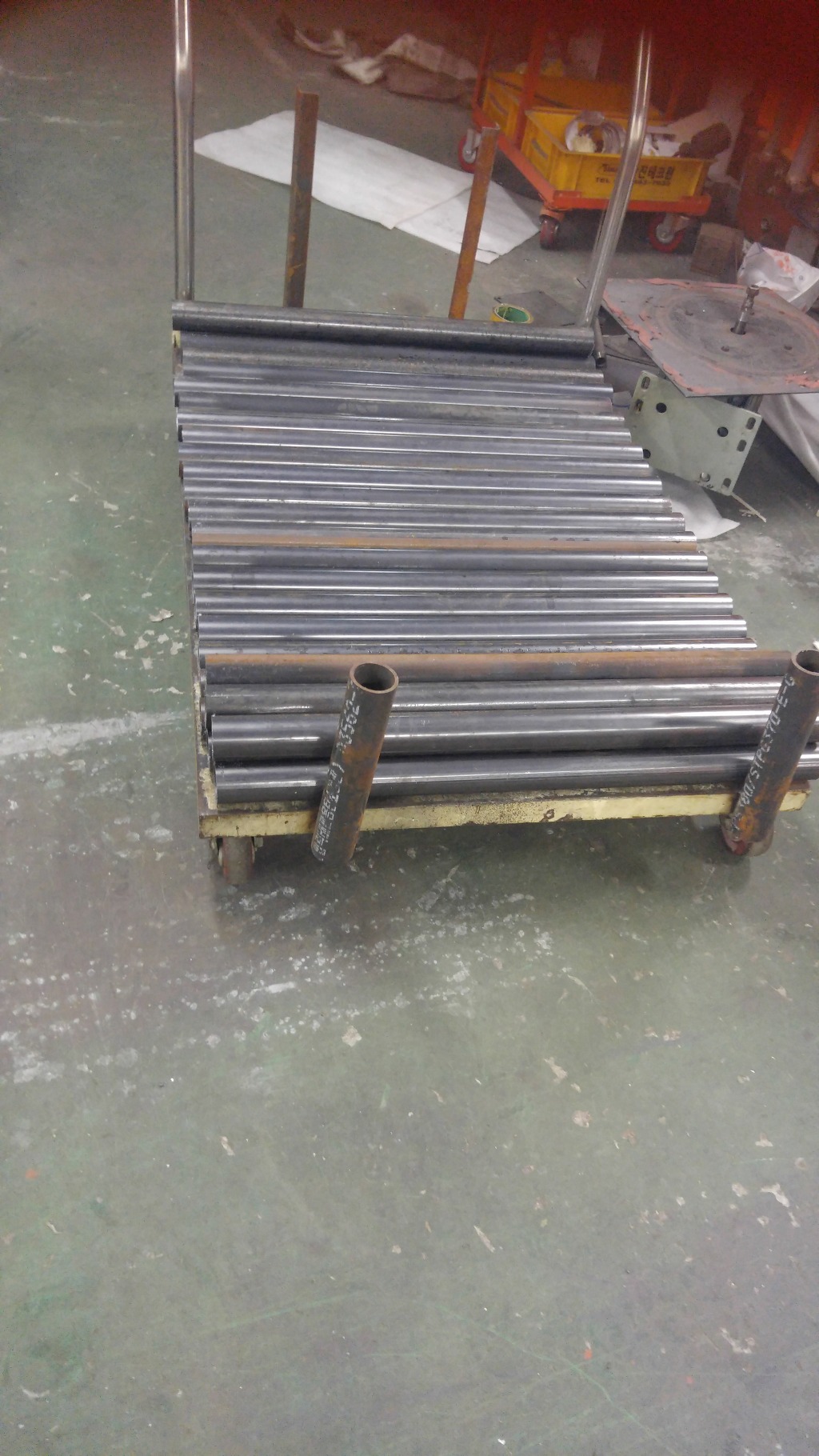 그리고 환봉들 용접 완료하고 그라인딩 뒤 따르게하고 그리고는 수평직선직각으로 적재하세요