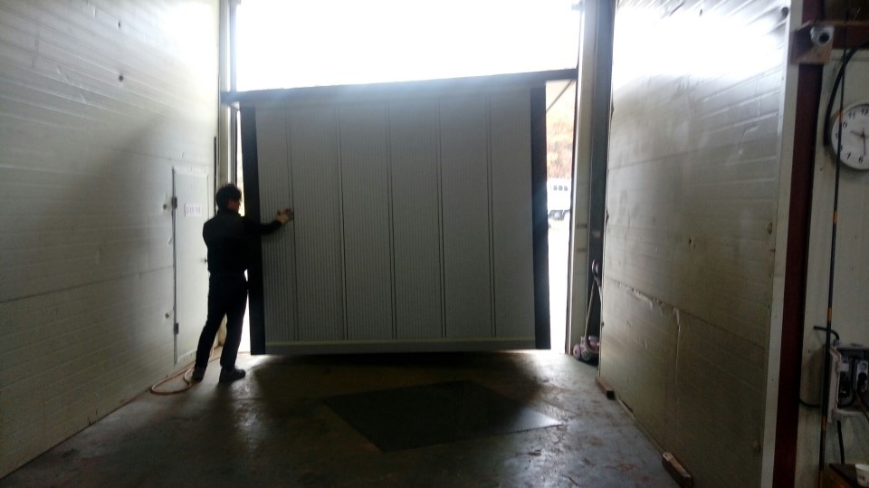 작업장 입구 농막 나가는 모습 아슬 아슬 하게 나갑니다
