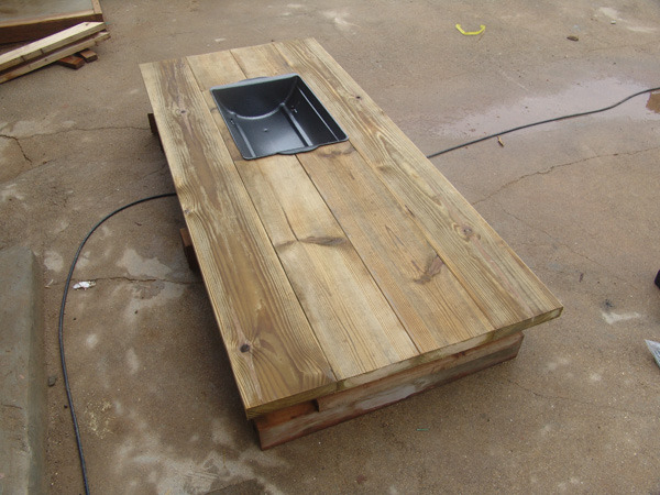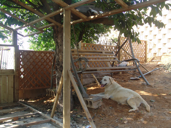 패브릭으로 제작된 그네인데 걷어내고 방부목으로 깔끔하게 마감했습니다.