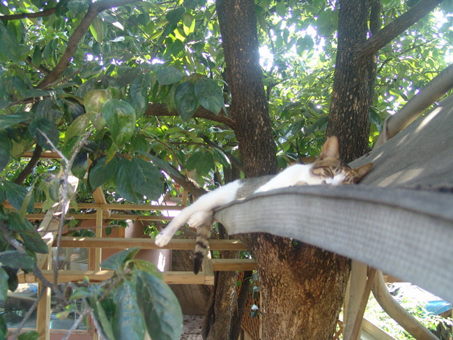 한녀석은 널브러져있고 한녀석은 그네위 지붕에...