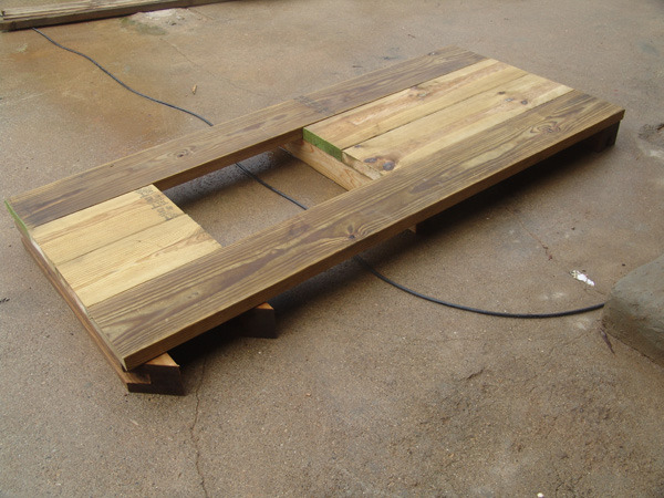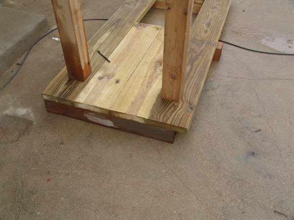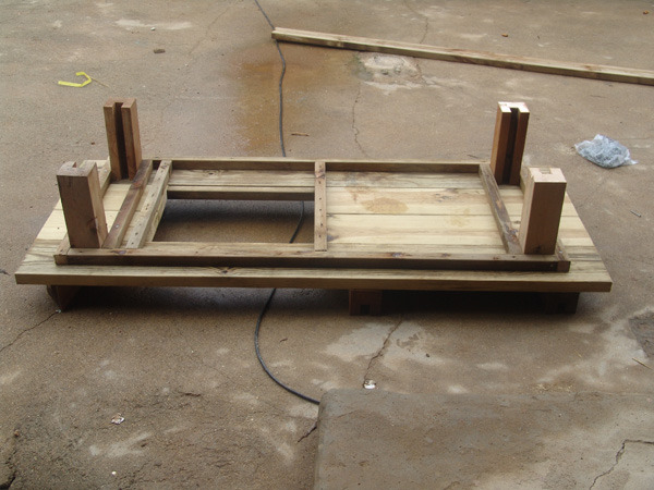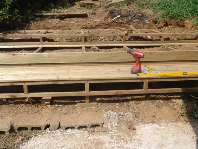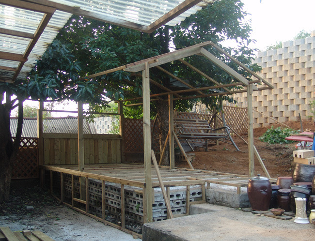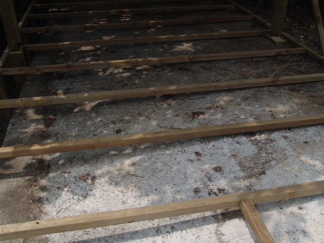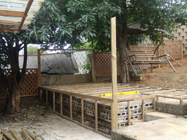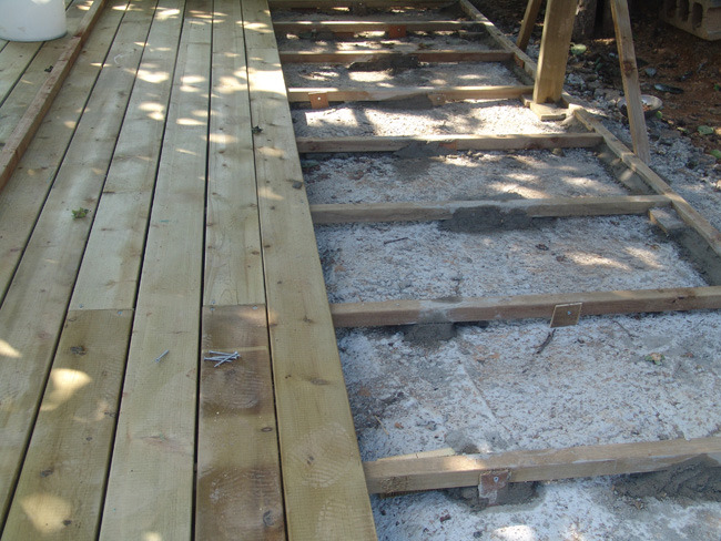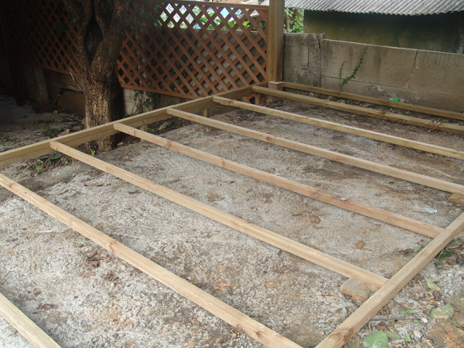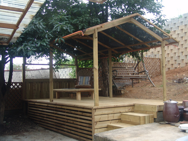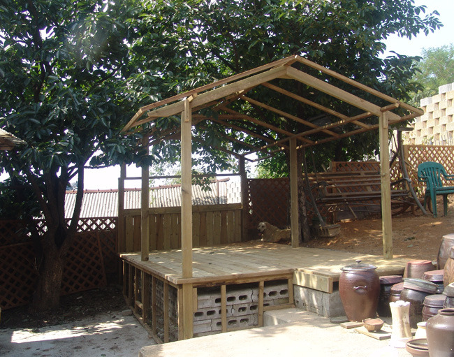 바닥틀은 버팀목과 시멘트를 이용해 튼튼하게 고정시킨후 데크를 깔아줍니다.